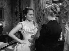 Wenn es in Henry James’ Romanen Figuren gibt, die leiden, so sind dies meistens die Frauen. Dies hat durchaus nichts mit einer entsprechenden Geisteshaltung des Schriftstellers zu tun, denn diese ist implementiert in der Gesellschaft, oder besser dem Teil, welchen er beschreibt, sowie der Zeit, in welcher Washington Square spielt. Die langen Beschreibungen von verschiedenen Anlässen, von Abendessen mit Freunden oder eben Feiern in der Familie, werden in Wylers Film zumindest stellenweise ersetzt durch die Innenaufnahmen eben jenes Hauses der Familie Sloper, welches in vielen Einstellungen eher einem Gefängnis gleicht, sowohl für Vater wie auch dessen Tochter. Die nüchtern-gemeine Erkenntnis, er habe eine „Allerweltskind“ zur Tochter mit einem naiv-einfachen Geist wird ersetzt durch das Minenspiel Ralph Richardsons, der mehr als einmal die Flucht sucht in seiner Arbeit oder in sein Büro, während Catherine alles versucht, um von ihrem Vater wahrgenommen zu werden und dabei gänzlich im Schatten der Mutter verschwindet.