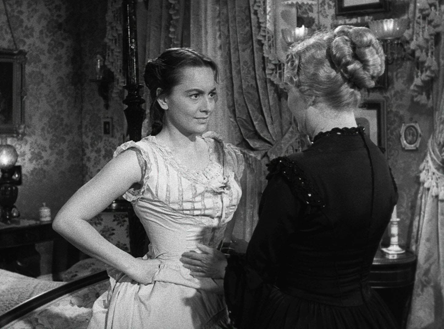 Diese emotionale Vergletscherung ist eingebrannt in einer Gesellschaft, in der Status alles ist und in der man seine Emotionen lernen muss zu kontrollieren. Mit klinischer Beflissenheit und der für seinen Berufsstand obligatorischen Selbstsicherheit stellt Austin fest, was es über den Liebhaber seiner Tochter zu sagen gibt, lässt kein anderes Urteil oder eine alternative Schlussfolgerung zu, was freilich die Distanz zwischen ihm und Catherine noch größer macht und zu einem endgültigen Bruch führen kann. In zahlreichen, sorgfältig inszenierten Einstellungen zeigt Wyler, wie diese emotionale Kluft größer wird, lässt uns als Zuschauer im Zweifel über die Reinheit von Morris’ Motiven, zeigt aber auch jene Fragezeichen auf, die sich mit der neuen Generation ergeben, die ebenso in der Sorge um Status und Geld ihre Emotionalität vergisst und nur noch Kälte im Herzen spürt.