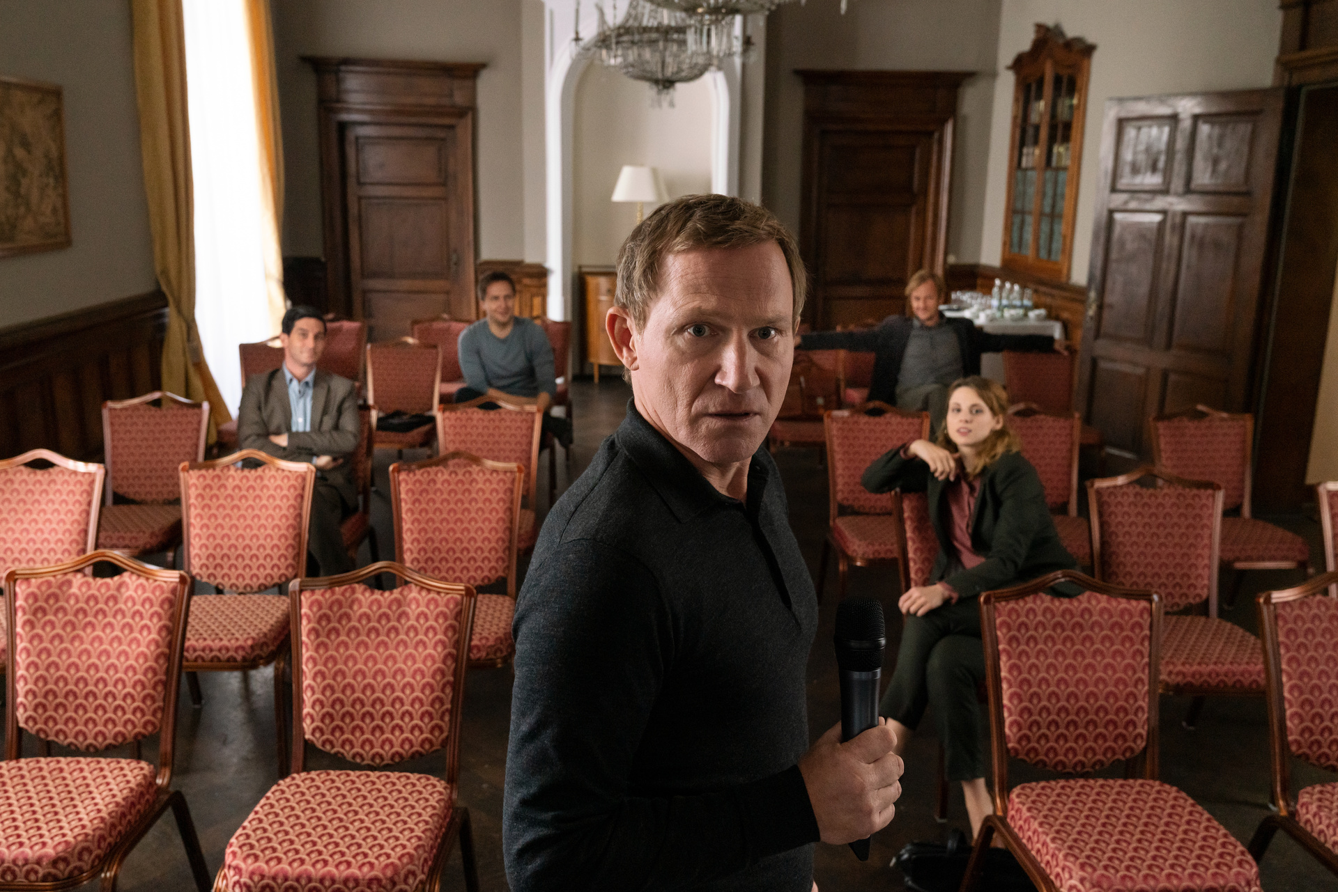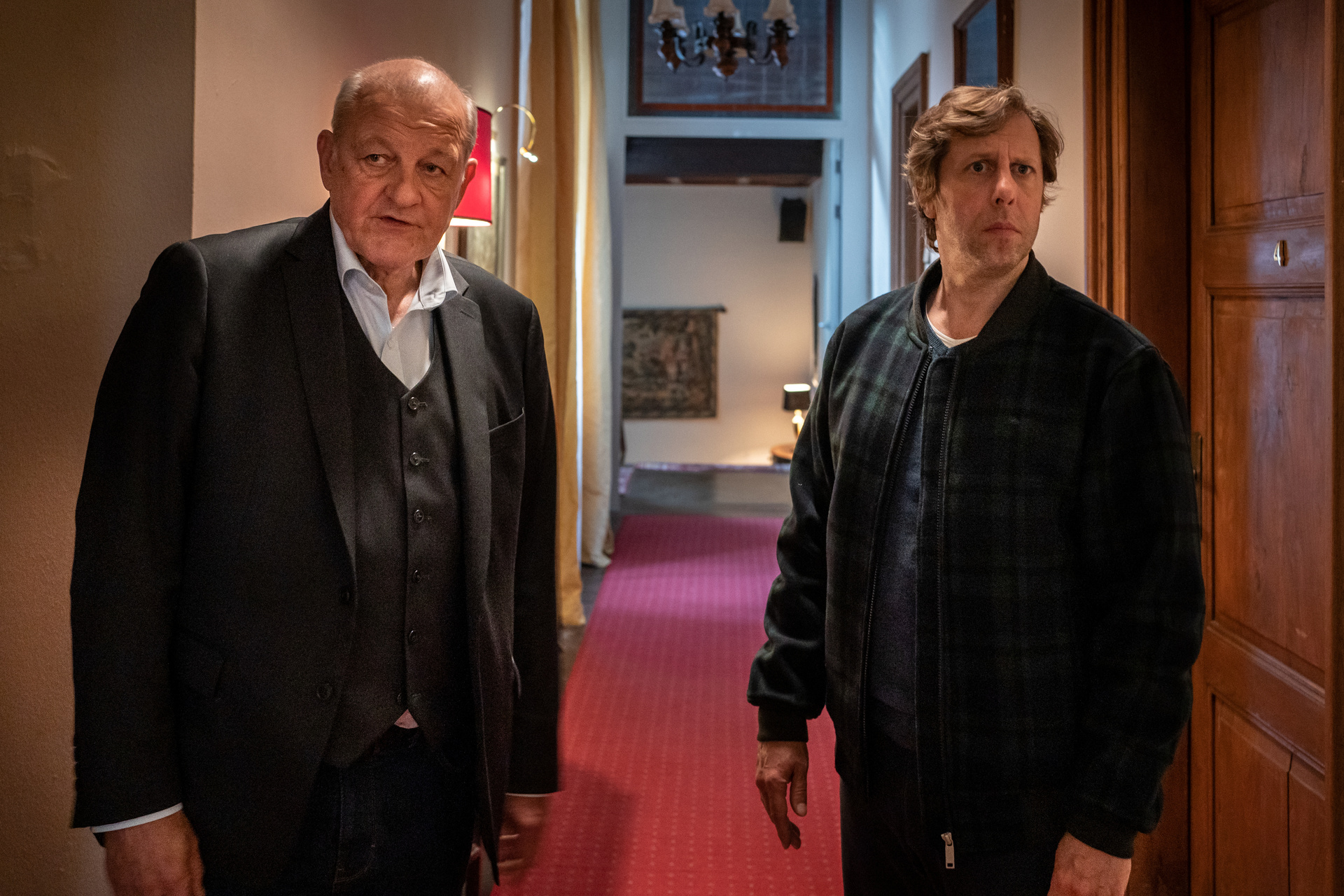 Wobei sich am Grundprinzip natürlich herzlich wenig geändert hat. Wilsberg: Einer von uns ist ein klassischer Whodunnit-Krimi, bei dem zu Beginn ein Verbrechen geschieht und es darum geht, unter mehreren Verdächtigen die richtige Person zu finden. Sogar das Setting ist ausgesprochen traditionell, spielt die 73. Folge des Dauerbrenners doch in einem abgelegenen Herrenhaus. Das bietet sich immer für irgendwelche Mordsgeschichten an, gerade auch wenn das Anwesen älteren Datums ist und so schön verwinkelt ist wie dieses hier. Schon ein Blick auf das Gebäude und man weiß: Ja, hier ist so manches Geheimnis vergraben, und sei es in den Geheimgängen, die es bei einem solchen Besitz braucht. Man weiß ja nie.