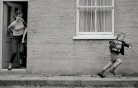 Nicht nur diese Eigenschaft teilt sich der Film mit dem ebenfalls autobiographischen Netflix-Hit Roma. Ebenso wie Alfonso Cuarons Drama handelt es sich auch Belfast um einen Schwarzweißfilm. Anders als bei Roma schafft es Kameramann Haris Zambarloukos in Belfast nicht, aus den Grautönen magische Bilder zu kreieren. Über weite Strecken wirkt die Bildsprache in Belfast leider unnötig blass. Dass der Film ursprünglich in Farbe gedreht wurde, wird nicht verheimlicht. Neben der Eingangsszene erstrahlt Belfast immer dann in satten Farben, wenn Buddy sich von der Theaterbühne oder der Kinoleinwand verzaubern lässt. Für die Erkenntnis, dass es sich bei diesen Szenen um Schlüsselszenen hält, hätte es die Farbspielerei nicht benötigt. Auch das Szenenbild in Belfast ist stark limitiert. Fast schon bühnenbildartig beschränkt sich das Bühnenbild auf die Wohnstraße von Buddy und seiner Familie. Abgesehen von Aufnahmen von Skyline und Wahrzeichen, die zwischen Szenen überleiten, gibt es keine Möglichkeit, die titelgebende nordirische Hauptstadt durch die Augen der Protagonisten zu erkunden. Was das Arbeiterviertel, in dem sich die Handlung abspielt, von einem im benachbarten Bangor oder dem etwas weiter entfernten Derry unterscheidet, wird nicht deutlich. Angesichts der starken emotionalen Bindung der Hauptcharaktere an die Stadt ist das schon verwunderlich.