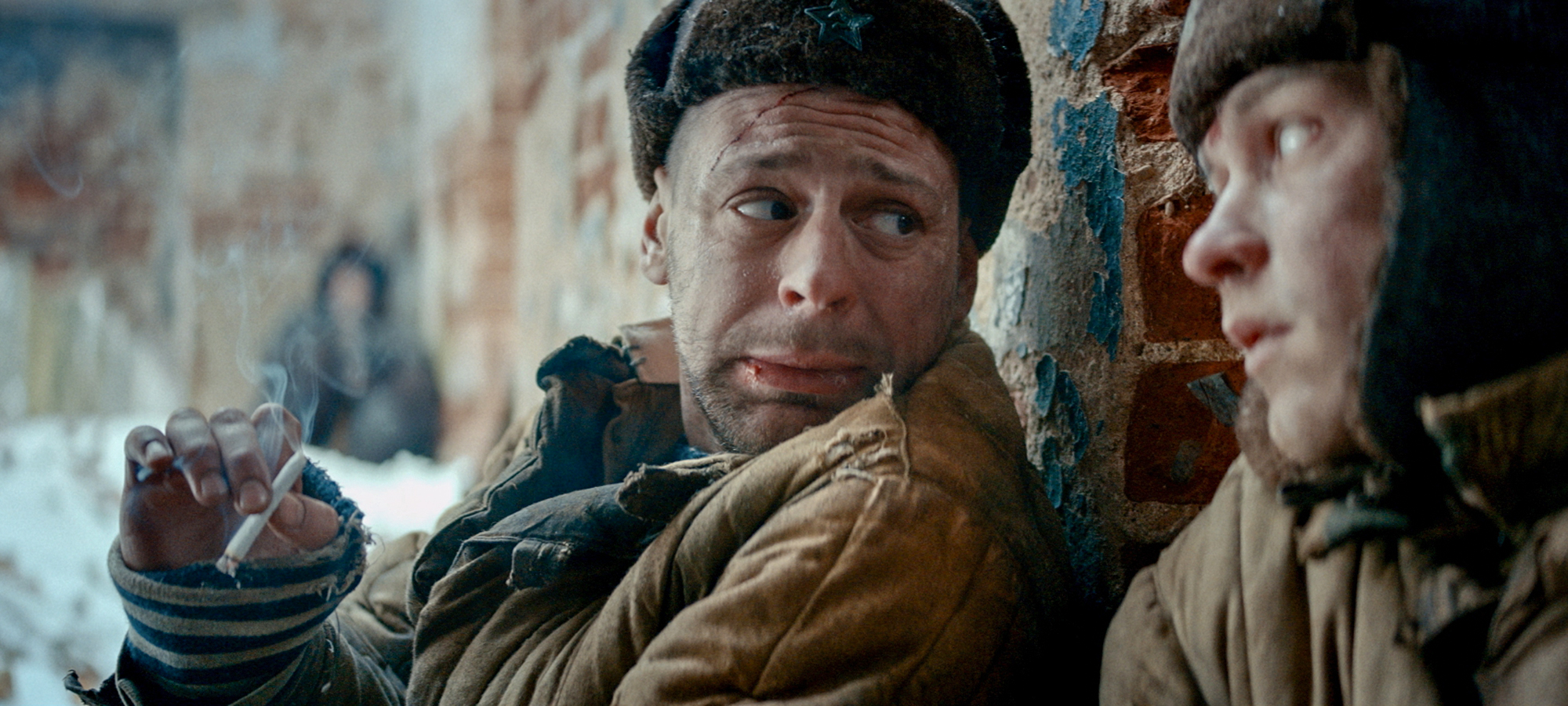 Die Truppe verliert zu Anfang ihren schwerverletzten Kameraden, den sie auf einer Trage durch die Schneemassen transportieren, gewinnen aber einen weiteren hinzu, einen jungen Deserteur kurz vor dem Erfrieren. Mit gebrochener, heiserer Stimme vermittelt er einen tragisch-wirklichen Eindruck eines zerstörten Körpers kurz vor dem Ende. Auch eine Frau ist mit von der Partie, die Feldärztin, die im achten Monat ihrer Schwangerschaft noch härter um ihr doppeltes Überleben kämpft als die Männer.