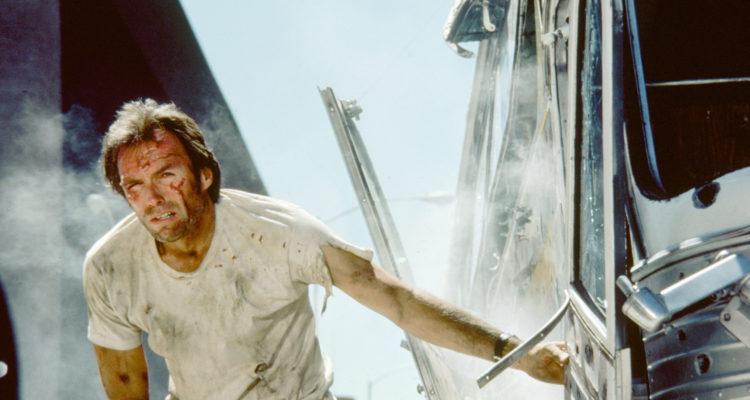 Nur: So wirklich spannend ist das nicht. Eben weil alles so überzogen ist, diverse Figuren nicht mehr sind als Karikaturen, nimmt man das nicht ernst genug, um wirklich mitfiebern zu können. Die letztendlich überflüssige Liebesgeschichte tut ihr übriges dafür, dass es zwischendurch – trotz der vielen Ereignisse – irgendwie eintönig wird. Dabei ist die Damsel in Distress durchaus unterhaltsam. Der Mann, der niemals aufgibt zeigt sie als Frau, die nicht auf den Mund gefallen ist und der es wichtig ist zu betonen, dass sie auf einer höheren Schule war. Die Hure mit Hirn also. Einzelne Momente hat der Actionthriller deshalb durchaus. Die Actionszenen selbst gehören aber nur bedingt dazu, da hat an einigen doch der Zahn der Zeit gehörig genagt. Da der Film sich zudem nicht ganz zum Blödsinn bekennen mag, ist das hier ein nur mittelprächtiges Werk in der Filmografie Eastwoods.