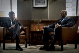 Gleichzeitig weckt ein solcher Film natürlich Erwartungen, die erfüllt werden müssen. Erwartungen, die Der Anruf aber gar nicht erfüllen will. Während die oben genannten Serien und auch die bekannten Filme auf eine Mischung aus geheimer Ermittlung und rasanter Action setzen, da ist die Adaption des gleichnamigen Romans recht statisch. Genauer besteht die Geschichte von Olen Steinhauer, der seine eigene Vorlage in ein Drehbuch umwandelte, praktisch ausschließlich aus Dialogen. Der Hauptdialog ist dabei der in dem Restaurant, in dem Henry und Celia zusammensitzen und über die Vergangenheit sprechen. Unterbrochen wird diese Unterhaltung, die sich zunehmend in eine Befragung verwandelt, von einigen Flashbacks. Aber auch diese bestehen meistens darin, dass sich zwei Leute unterhalten.