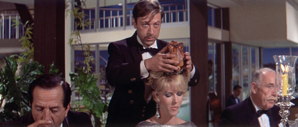 Interessant sind hierbei nicht nur jene Szenen, welche die besonders schlimmen Katastrophen oder Fehltritte Bakshis zeigen, sondern eben die Folgen und die Reaktionen. Eine Entschuldigung des Inders, wenn auch etwas übertrieben höflich vorgetragen, wird zur Kenntnis genommen aber gar nicht wirklich registriert, genauso wie seine Beteuerungen, keinen Alkohol vertragen zu können, was naturgemäß darin mündet, dass man ihm eben diesen fast schon aufzwingt. Die Entgleisung wird vorbereitet, die Katastrophe vorbereitet, sodass eben jenes Establishment sich ironischerweise sein eigenes Grab schaufelt. Edwards zeigt sich als genauer Beobachter einer Gesellschaft, die sich aufgrund ihres Reichtums und ihrer Werte als unangreifbar betrachtet, aber gerade dadurch zu Fall gebracht wird.