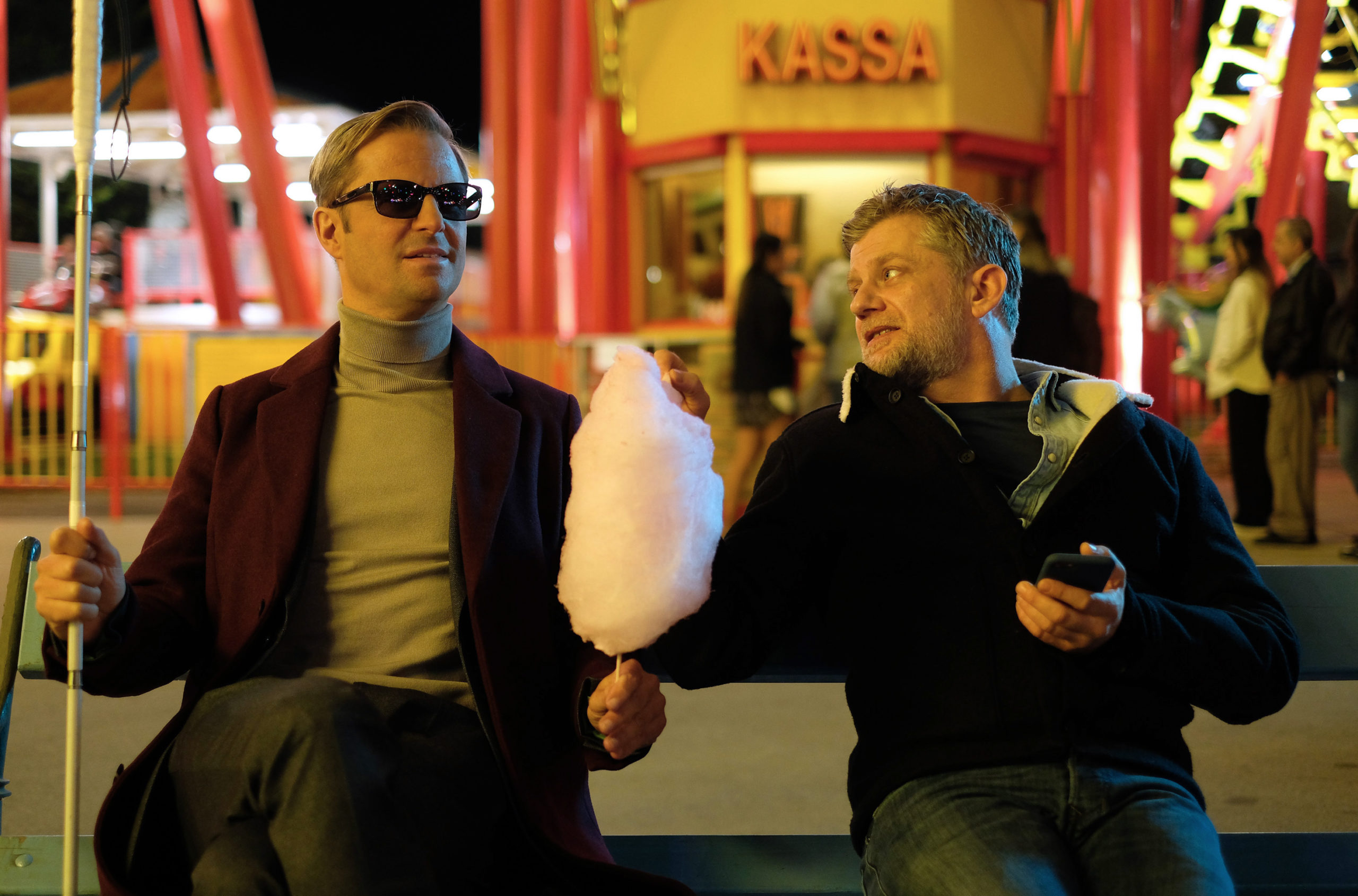 Leider bestätigt sich der Eindruck bei Der Wien-Krimi: Blind ermittelt – Tod im Prater, dem inzwischen sechsten Teil der Reihe wieder. Der Schauplatz bringt dabei erneut ein paar Pluspunkte: Wie der Titel bereits vorwegnimmt, spielt die Geschichte maßgeblich im Wurstelprater, gemeinhin als Prater bekannt, einem historischen Vergnügungspark in Wien. Und das ist schon ein recht atmosphärisches Setting: Zuckerwatte und eine Geisterbahn sieht man in dem Zusammenhang dann doch nicht so wahnsinnig oft. Zusammen mit dem lokalen Flair stimmt also schon einmal das Drumherum, zumal der traditionelle, ein wenig aus der Zeit gefallene Ort einen reizvollen Kontrast zum unterkühlten Schick der Bürogebäude bildet.