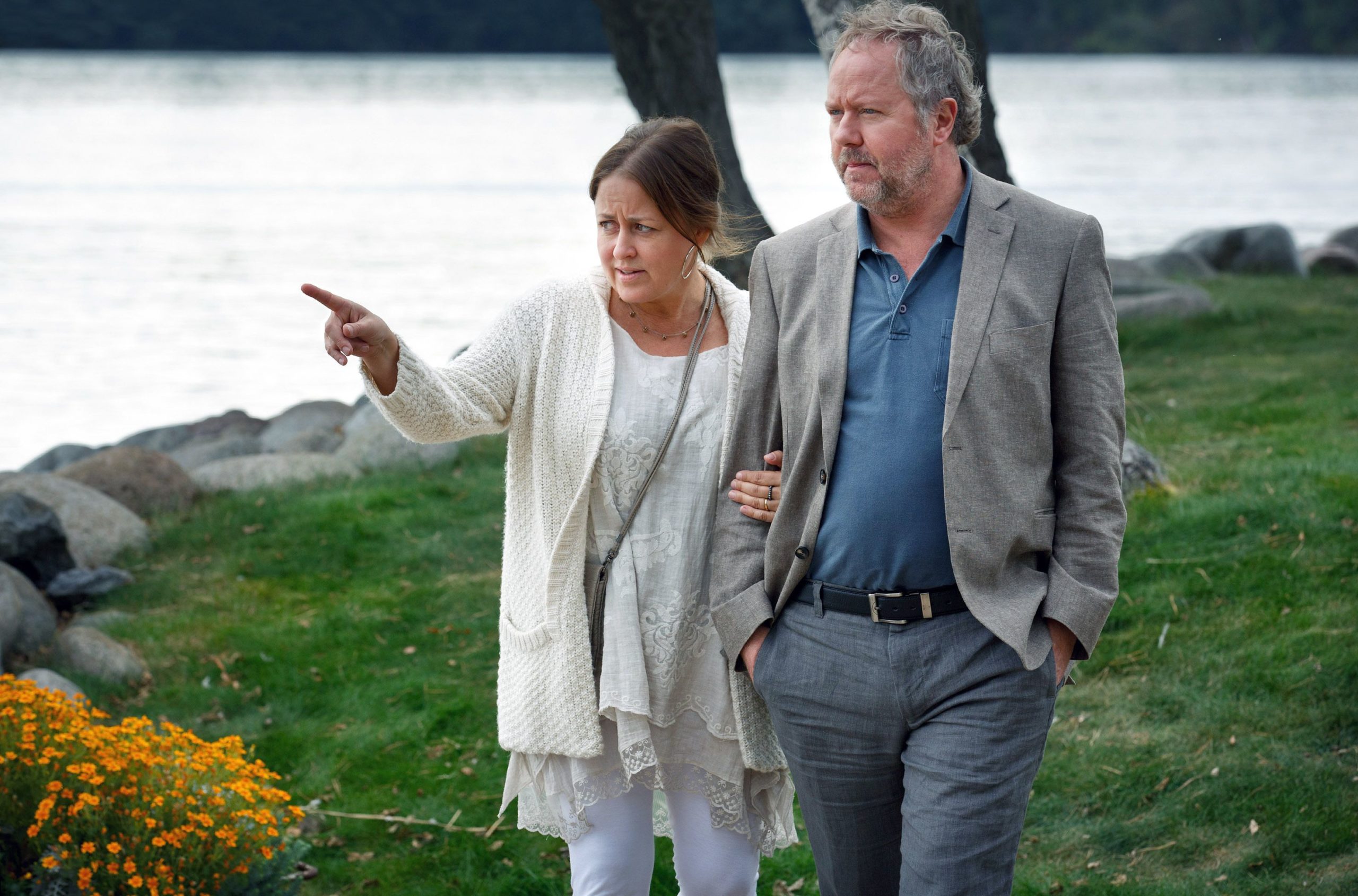 Das hängt auch damit zusammen, dass wir hier erstaunlich wenig Zeit mit den Ermittlungen verbringen. Überhaupt verschwindet das Polizeiduo zwischendurch immer mal wieder für längere Passagen. Wo später häufiger die persönlichen Geschichten die Kriminalfälle überlagerten, gerade bei der Frage, was mit Alexanders Frau Vicky passiert ist, da sind die zwei ermittelnden hier schon sehr zurückhaltend. Um nicht zu sagen farblos. Immerhin, Mord im Mittsommer: Im Schatten der Macht lockt mit schönen Aufnahmen der schwedischen Küstenlandschaft. Man kann sich schon ein wenig Zeit damit vertreiben, hier einfach nur zuzusehen. Auf Dauer ist das aber doch irgendwie wenig, weshalb sich spätestens zur Mitte hin Langeweile breit macht.
