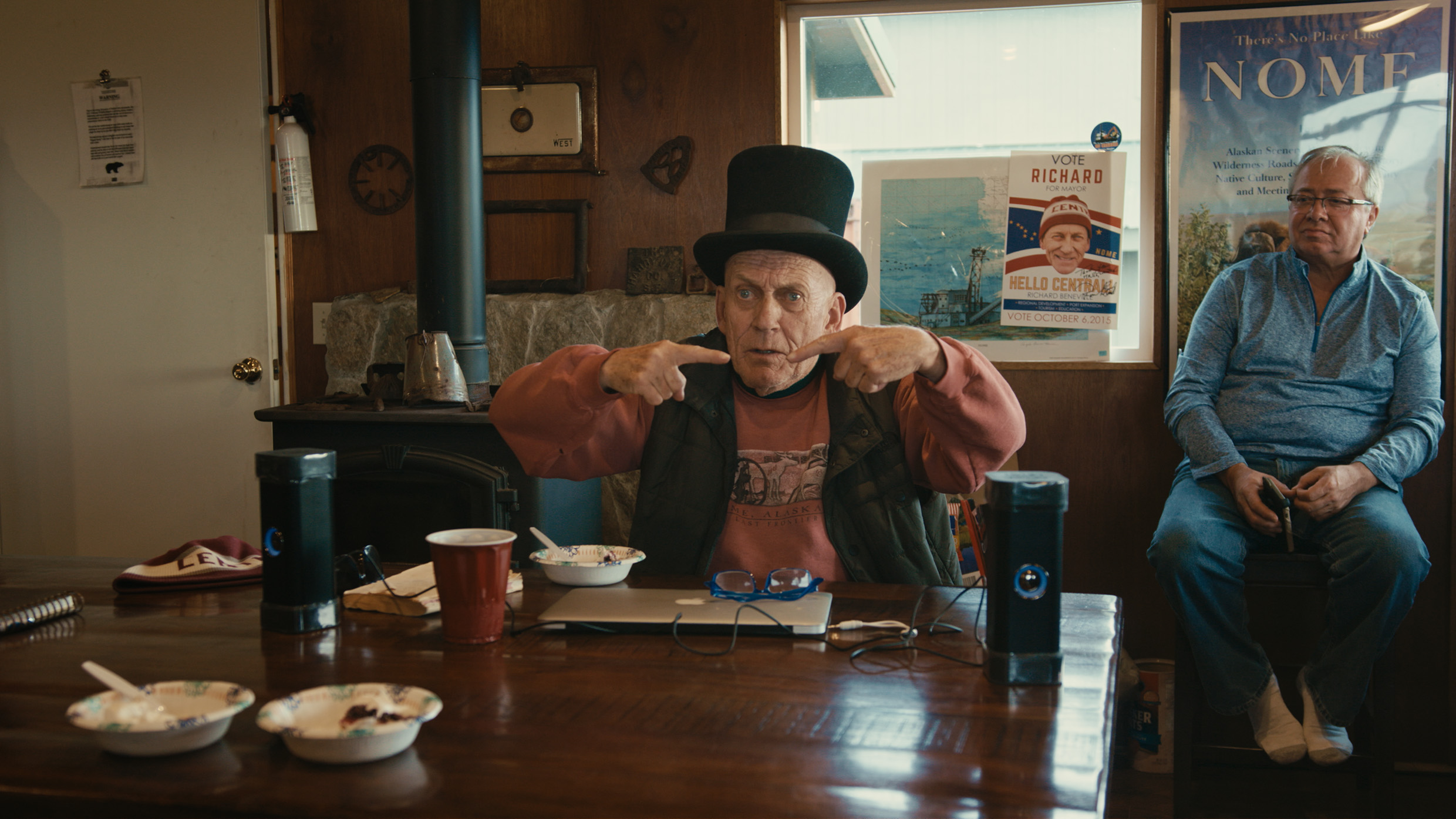 In erster Linie ist The Strait Guys ein dokumentarisches Roadmovie. Das Filmteam fährt über Anchorage hoch hinauf in den Norden, zu den Ureinwohnern, hinüber zu den Inseln, nach Jakutien und Moskau. Es filmt die erhabenen Landschaften nahe des ewigen Eises und die Treffen mit Bürgermeistern, Gemeinderäten, russischen Delegierten sowie Vertretern des Parlamentes. Schnell wird deutlich: Mit offenen Armen werden George und Scott nirgendwo empfangen. Zu futuristisch und zu umwälzend erscheint ihr Vorhaben. „Ein Märchen“ nennt es einmal ein russischer Funktionär, solange Moskau und Washington die interkontinentale Verbindung nicht zur gemeinsamen Chefsache machen.