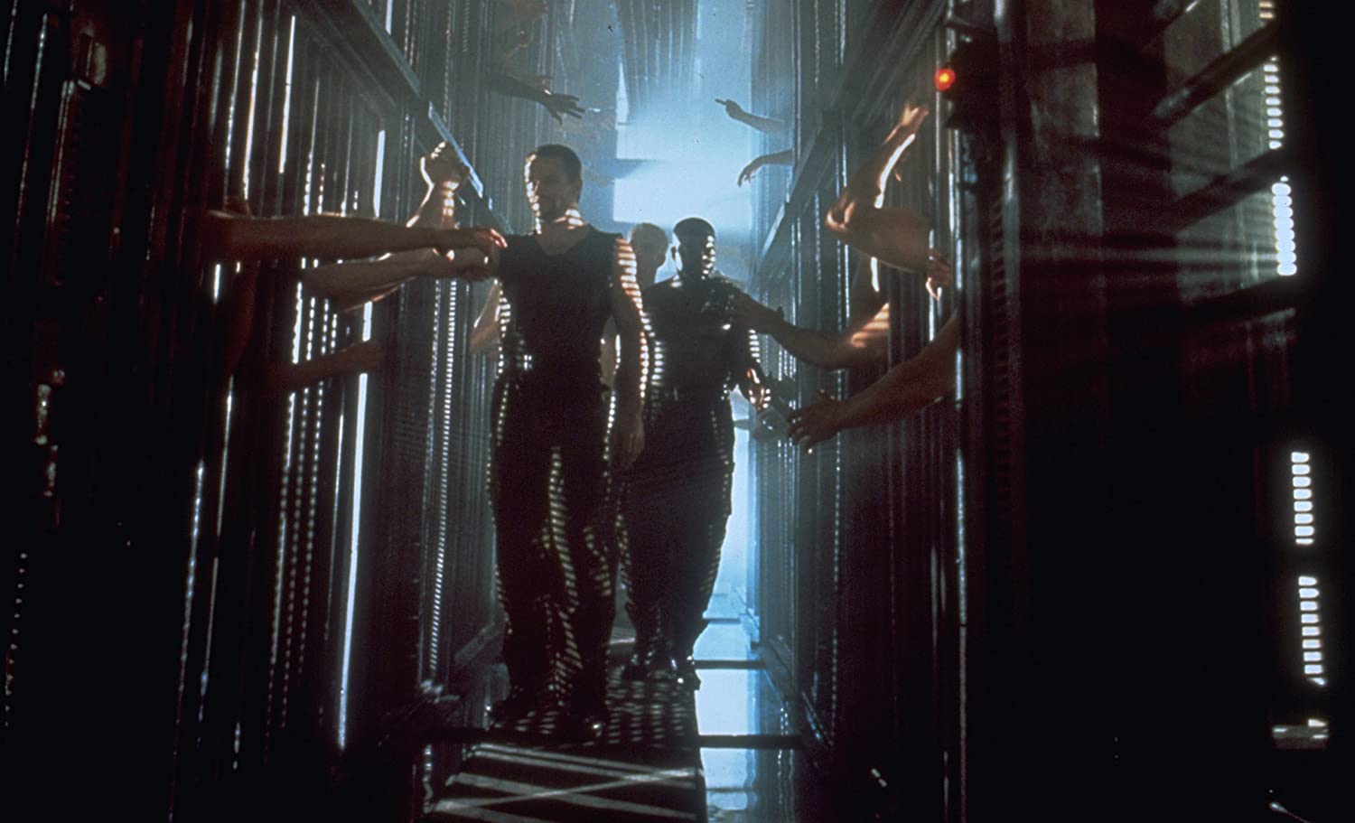 Das Kino Roland Emmerichs ist vor allem eines, welches auf Effekten aufbaut. Auch wenn die von Moon 44 mittlerweile etwas in die Jahre gekommen sind, waren sie für die Zeit und das Budget durchaus mehr als in Ordnung. Vor allem der Einsatz von Licht täuscht bisweilen darüber hinweg, mit welch wenigen Mitteln hier maximale Wirkung erzeugt werden sollte. In diesem Zusammenhang wollen Emmerich und Kameramann Karl Walter Lindenlaub in erster Linie auf die klaustrophobische Atmosphäre an Bord der Raumstation setzen, die den Figuren wenig Freiraum lässt und bisweilen eher etwas von einem Gefängnis hat. Wenig einladend muten da auch die wenigen Außenaufnahmen des Mondes an, auf dessen Oberfläche neben ewiger Nacht zudem extreme Wetterbedingungen herrschen, was die Umstände dort noch lebensfeindlicher werden lässt. Die Ideen sind da, ebenso wie die Bilder, doch im Vergleich zu den oftmals zitierten Vorbildern wie Alien – Das unheimliche Wesen aus einer fremden Welt oder Blade Runner fehlt es Moon 44 an entscheidenden Stellen an dem gewissen Etwas.