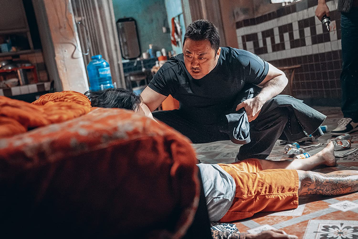 Das lässt sich sowohl auf Gesprächssituationen als auch auf die zahlreichen Action- und Kampfsequenzen übertragen. Ma hat so ziemlich immer die Oberhand. Sei es im Verhör oder in einer Schlägerei. Allerdings geht so auch die emotionale Fallhöhe im Film verloren. Da der Polizist weder im Kampf wirklich in Bedrängnis kommt, noch mit realen Konsequenzen zu rechnen hat, wenn er mal zu illegalen Mitteln in einem Verhör greift, wird schnell deutlich, dass man in The Roundup kein wirkliches Drama oder emotionale Höhepunkte erwarten darf. Die Nebencharaktere, die immer mal wieder zu Schaden kommen oder in Schwierigkeiten geraten, sind dabei zu unausgereift und zu schwach charakterisiert um diese fehlende Fallhöhe angemessen zu kompensieren.