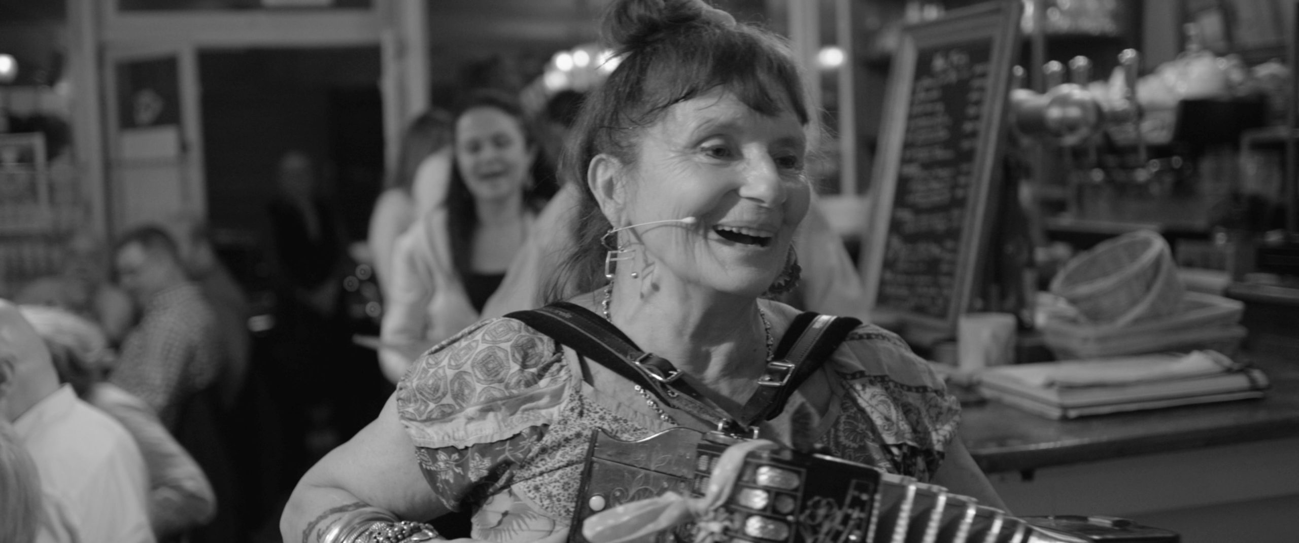 Wobei die Grenzen zwischen Leben und Erinnern fließend sind. Oft blicken die Protagonisten und Protagonistinnen zurück, erzählen von früher. Dies tun sie jedoch selten in Form reiner Interviews. Oftmals ist Abke nur dabei, wenn andere sich unterhalten oder musizieren. So als wäre sie einer der vielen Gäste, die noch immer ins Café kommen, hätte an einem der Tische Platz genommen und sich gerade einen kleinen Aperitif bestellt, um den anderen zu lauschen oder auch einfach die Atmosphäre zu genießen. Von dieser gibt es in Belleville, belle et rebelle jede Menge. Bemerkenswert ist dabei, wie harmonisch diese ist. Obwohl die Menschen sehr unterschiedlich sind, die dort ein und ausgehen, zwischendurch auch lebhaft über Themen wie Gerechtigkeit diskutiert werden, man hat hier das Gefühl einer Gemeinschaft.