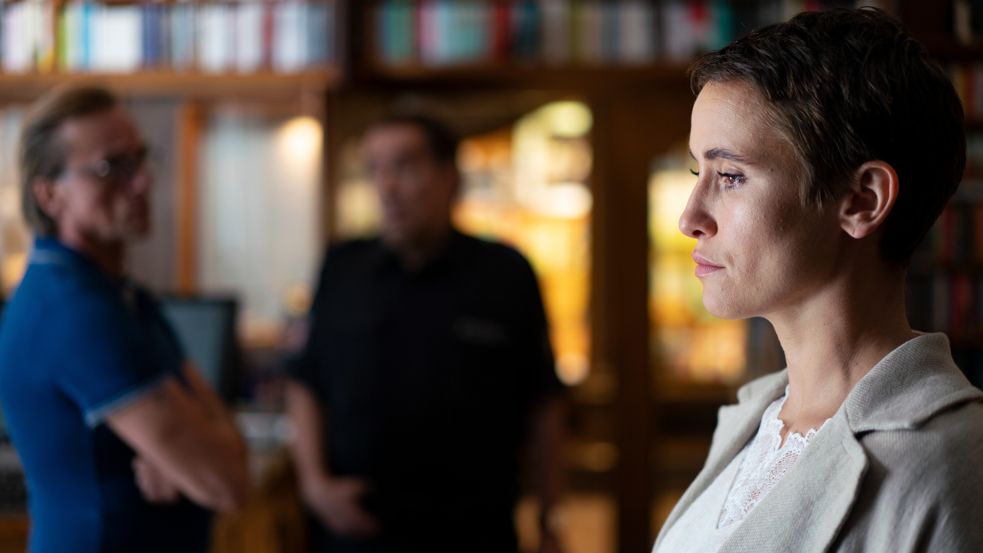 Doch auch wenn sich das alles ein bisschen mächtig und zu konstruiert anhört, hat die Serie durchaus ihren Reiz. Nicht nur dass die Themen für sich genommen oft interessant und relevant sind. Es gelingt bei Neuland auch gut, nach und nach diese ganzen Elemente hinzuzufügen, ohne dass man sich davon überwältigt fühlt. Wo am Anfang noch das Verschwinden von Alexandra für Irritationen sorgt, zeigen sich mit der Zeit immer mehr Risse in der heilen Fassade. Eigentlich sind fast alle Figuren auf die eine oder andere Weise kaputt, auch wenn niemand das wahrhaben will. Zum Teil fungiert Karen dabei als Katalysator, vor allem im Umfeld der Schule, das einem Wespennest gleicht, bei dem Verletzungen kaum zu vermeiden sind. Zum Teil wird sie aber auch nur zu einer reinen Beobachterin und damit einer Stellvertreterin für das Publikum.