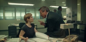 Oliver Masucci (Enfant Terrible, Schachnovelle) ist für eine solche Rolle eine Idealbesetzung. Es gelingt dem Charakterdarsteller, das Kuriose und das Abgründige zusammenzuführen. Sein Raik Doormann gehört sicher zu den schillerndsten Gestalten des True-Crime-Sektors. Und den widerwärtigsten. Allein deshalb lohnt es sich schon, sich German Crime Story: Gefesselt einmal anzusehen. Hinzu kommt die nicht unbedingt subtile, aber doch reizvolle Sepia-Retro-Stimmung. Schade ist, dass die eigentliche Ermittlung ein bisschen kurz ausfällt. Immer wieder befasst sich die Serie lieber mit dem Thema, wie sich eine Frau – Nela ist die erste in der Mordkommission – in einer Männerwelt durchsetzen muss. Das ist sicherlich für sich genommen wichtig, überlagert aber zuweilen den Fall und hat letztendlich auch nicht wirklich viel zu allem zu sagen. Da sind nur Stereotypen zu holen, die sehr viel weniger fesseln als der Haupt-Antagonist.