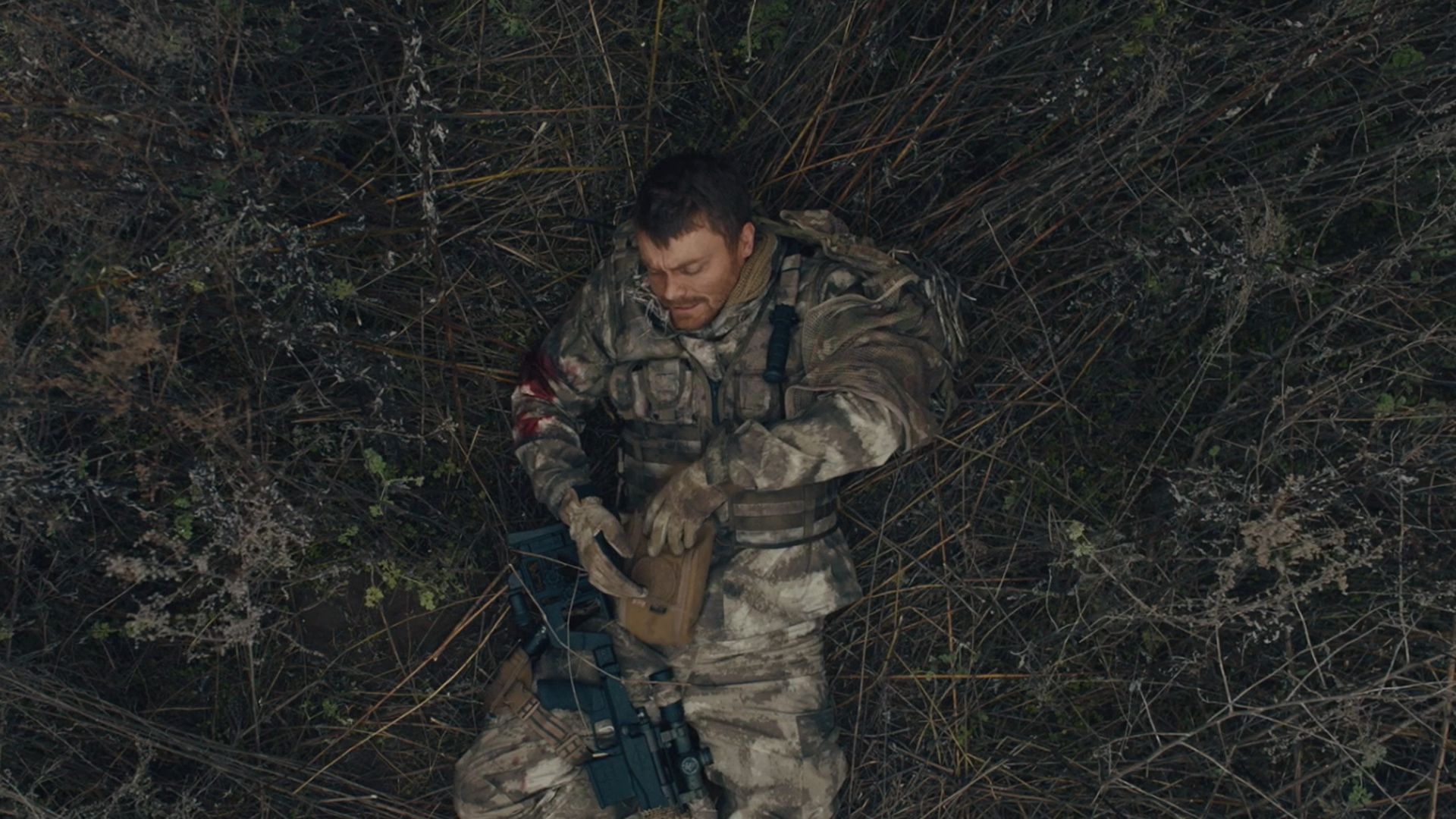 Sniper – The White Raven ist ein ukrainisches Kriegsdrama, welches bereits vergangenen August seinen Release in der Ukraine „feiern“ durfte. Damit kam es zu einer schmerzhaft passenden Zeit in ein Land, das sich mehr als all die Jahre zuvor dem Krieg verschreiben musste. Die grausame Realität, auf deren frühen Fußspuren man hier wandelt, sorgt für eine Extraportion Gänsehaut. Die inzwischen durch die internationalen Berichterstattungen wohlbekannte Flora und Fauna des weiten Landes wird in diesem Film atmosphärisch packend mit gekonnter Kameraarbeit und einem trist-tragischen Soundtrack als ein trostloses wie auch tröstendes Meer aus Feldern, Wäldern und Sträuchern eingefangen. Dem Filmemacher Marian Bushan gelingt so die schmale Gratwanderung zwischen Kriegsgebiet und Heimat, beschwört er mit seinem Setting doch auch bei Nicht-Ukrainern eine mulmige Zwiespältigkeit herauf.