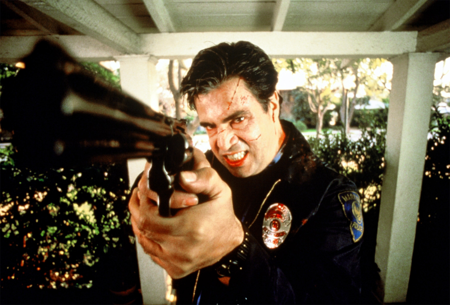 Vor allem aber Nightmare scheint Pate gestanden zu haben für Shocker, dessen Hauptfigur ebenfalls von schrecklichen Visionen geplagt wird und nicht mehr sicher sein kann, von wo oder wie der Killer als Nächstes zuschlagen wird. Während die Vorlage jedoch auf eine Traumwelt und deren Logik wie auch Ästhetik zurückgreifen konnte, ist Shocker voll und ganz verwurzelt in der Konsumwelt der 80er Jahre. Eine Trennung zwischen Traum und Wirklichkeit scheint obsolet, da sowieso niemand mehr die beiden auseinanderhalten kann und man sich voll und ganz auf das Narrativ der Medien verlässt. Wie eine Ironie mutet es da an, dass der brutale Killer ausgerechnet eine TV-Werkstatt besitzt, die ihm Zugang zu all jenen Wohnzimmern gewährt, in denen seine Opfer sind. Der von Mitch Pileggi gespielte Horace Pinker erscheint wie eine übertriebene Verkörperung jenes Dämons, der in der Maschine haust, eine unwirkliche Mischung aus all jenen Serienkillern, die man aus den Medien kennt und der letztlich seine körperliche Hülle ablegt, sodass er gänzlich im TV sowie den elektrischen Kreisen einer Stadt sein Unwesen treiben kann.