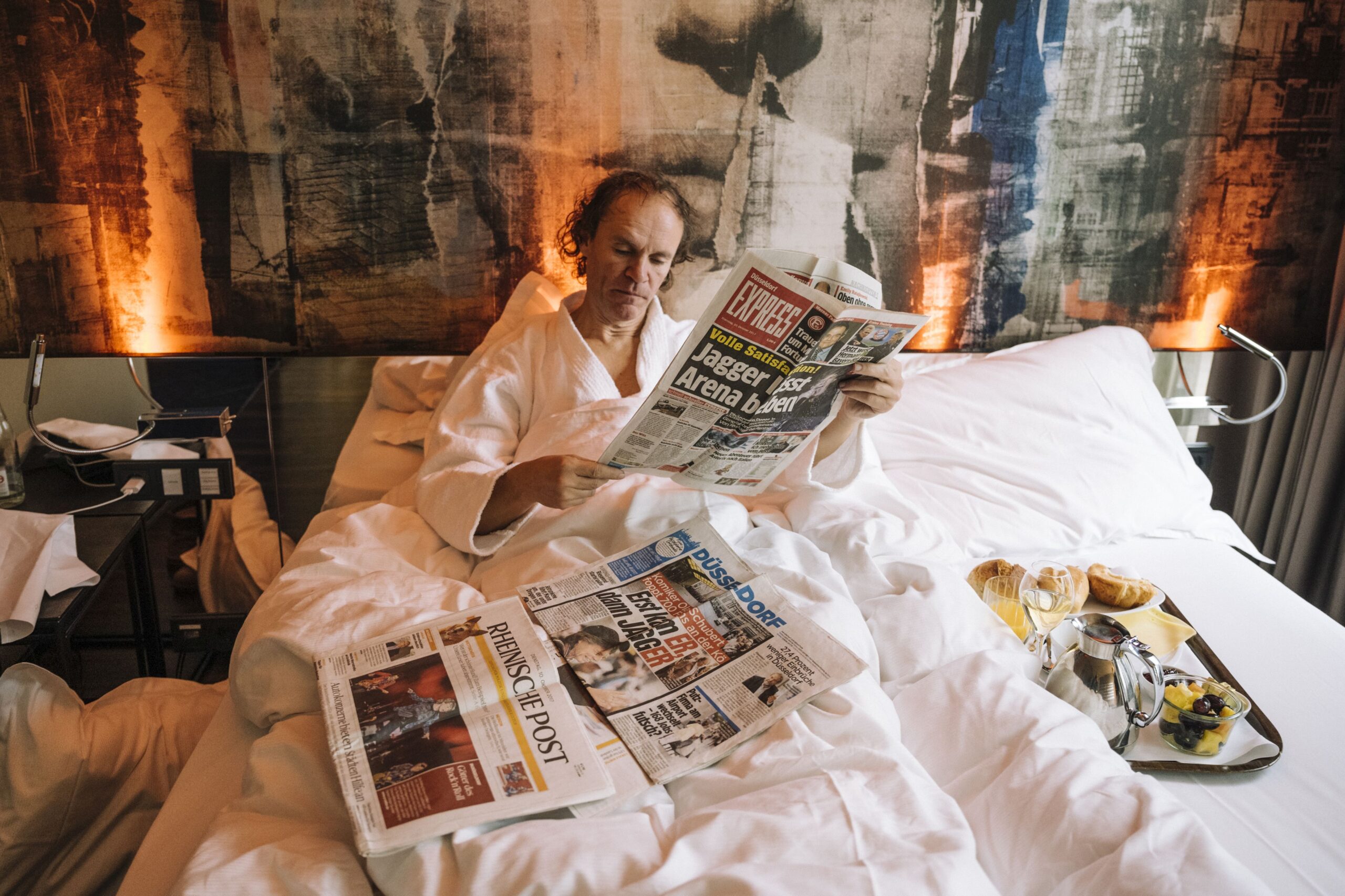 Der Schnitt funktioniert auch und erzeugt einen guten Fluss. Interviewsituationen, alte Aufnahmen, Olaf im Auto, etc. Der Wechsel der Locations hat einen guten Rhythmus wie Sir Mick Jagger selbst. Dadurch wird auch ein Gefühl des Fortschritts der Suche vermittelt. Einmal imitiert Olaf den Sänger im Hotel. Er singt vor einer Wand, an die ein Auftritt der Rolling Stones projiziert wird. Diese Überlappung von Neu und Alt, Vater und Sohn durch die Zeit getrennt, ein skurriles Duett, hat etwas Poetisches. Eine Szene, die vom Timing nicht so ganz zu passen scheint, ein wenig „im Nachhinein drangehängt“ wirkt, ist der Epilog. Aber auch das ist Meckern auf hohem Niveau.