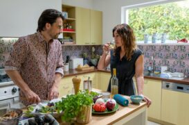 Vielleicht spekuliert man darauf, dass die Menschen Lust auf Urlaub haben. Wenn nicht, dann besteht doch eine realistische Möglichkeit, dass diese durch den Film geweckt wird: Schlaflos in Portugal könnte an manchen Stellen als Werbefilm für das südeuropäische Land durchgehen, wenn wir hier eine Reihe schöner Landschaften sehen, dazu das idyllische Urlaubsdomizil. Auch das Essen weckt den Hunger auf mehr. Größere kulturelle Einblicke sollte man hier hingegen nicht erwarten, diesen Anspruch hatte man gar nicht. Stattdessen wird Portugal zu einer bloßen Kulisse, um von der Annäherung der zwei Hauptfiguren zu erzählen, die jeweils auf ihre Weise in ihren Ehen eine Enttäuschung erfahren haben.
