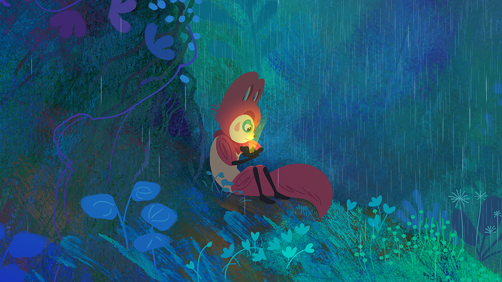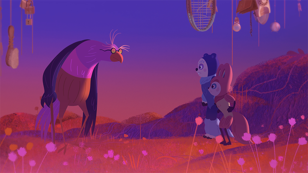 Dies tut er jedoch ohne den befürchteten erhoben Zeigefinger. Vielmehr verpackt er seine Nachricht in ein Abenteuer, das gleichermaßen fantasievoll wie mysteriös ist. So gibt es von Anfang an Hinweise, dass bei dieser Welt etwas nicht stimmt. Was hat es mit den eigenartigen Nachrichten auf sich, Tonfolgen, die sie über einen Empfänger hören? Und gibt es diese Perlimps überhaupt, von denen in Legenden die Rede ist? Auf der Suche nach Antworten durchqueren sie den Wald, begegnen zwischendurch noch einer weiteren Figur. Geredet wird auch, anders als beim mehr oder weniger wortlosen Der Junge und die Welt. Aber die Dialoge sind weniger dazu geeignet, Licht ins Dunkle zu bringen. Dafür verstehen die beiden Hauptfiguren selbst zu wenig, was da vor sich geht. Sie müssen selbst erst einen Sinn in dieser Welt finden.