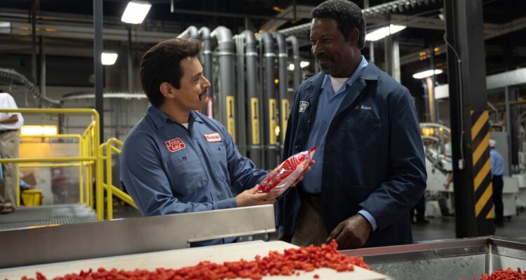 Die Resonanz auf dieses Debüt ist dabei durchaus ordentlich, sowohl bei der Premiere beim South by Southwest Festival 2023 wie auch als Streamingtitel kam der Film gut an. Kein Wunder, präsentiert Longoria doch eine Wohlfühlgeschichte, die auf einem beliebten Prinzip basiert. So gab es in den letzten Jahren eine Reihe von Filmen, die von unglaublichen Erfolgen in der Geschäftswelt berichteten. Dabei ist es fast egal, womit die jeweiligen Protagonisten und Protagonistinnen nun ihren Durchbruch schaffen. Bei Air – Der große Wurf waren es Sportschuhe, Tetris handelte vom Kampf um das gleichnamige Videospiel. Bei Flamin’ Hot ist es nun Essen. Genauer folgen wir einem Mann mit Migrationshintergrund, der aus einfachsten Verhältnissen kommt und es bis an die Spitze schafft, dabei auch noch die berühmten Flamin‘ Hot Cheetos erfindet.