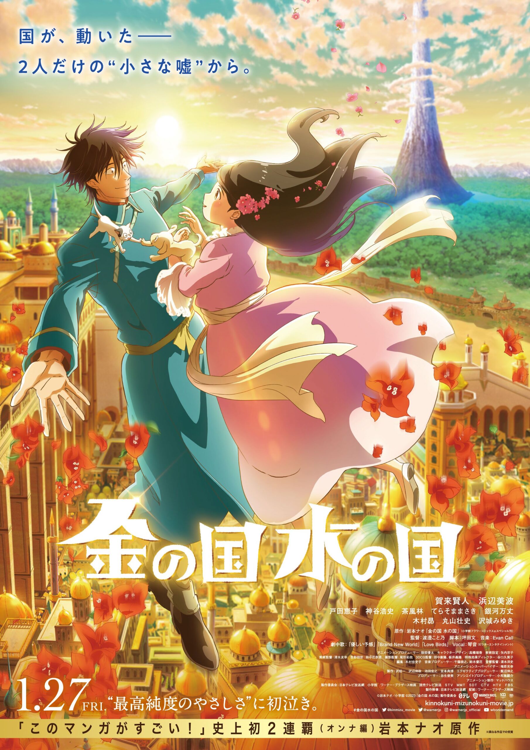 Visuell ist das Ganze ordentlich geworden. Das Traditionsstudio Madhouse (Goodbye, Don Glees! – Wege einer Freundschaft, Okko und ihre Geisterfreunde) hat stimmungsvolle Hintergründe geschaffen, die auch die Kontraste zwischen den beiden Reichen betonen. Wie schon der Titel Gold Kingdom And Water Kingdom verrät, ist eines der beiden Länder reich an Gold, das andere reich an Wasser. Da trifft ein karger Prunkpalast auf grüne Gärten. Technisch ist das sauber, wenngleich bei einem Kinofilm mehr drin gewesen wäre. Die Designs der Figuren sind ohnehin nur Durchschnitt und entsprechen 08/15-Anime-Designs. Wen das nicht stört, findet hier ein ansprechendes Werk, auch wenn der Film kaum dazu geeignet ist, dass man sich längerfristig an diesen erinnert.