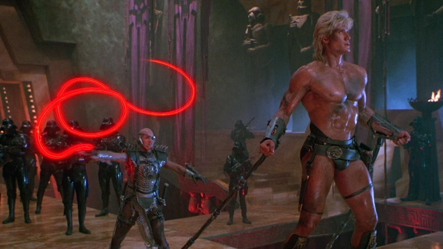Warum der Film so baden ging, hat unterschiedliche Gründe. Zum einen war die Popularität der 1982 gestarteten Spielzeugreihe bereits stark am Sinken. Die enorm beliebte Zeichentrickserie He-Man and the Masters of the Universe war 1985 bereits zu Ende gegangen, die Spin-off-Serie She-Ra: Princess of Power über He-Mans Zwillingsschwester lag ebenfalls in den letzten Zügen. Zum anderen hat Masters of the Universe mit der Vorlage auch einfach recht wenig zu tun. Das betrifft die Gestaltung der Figuren. Zwar tauchen eine ganze Reihe von Fan-Lieblingen auf, sowohl auf der Helden- wie der Schurkenseite. Kaum jemand davon ist jedoch als Live-Action-Variante wiederzuerkennen. Bei He-Man selbst geht das Ergebnis noch in Ordnung, auch wenn Dolph Lundgren (Rocky IV – Der Kampf des Jahrhunderts) nicht unbedingt eine Idealbesetzung ist. Bei Man-At-Arms, Teela, der Zauberin oder auch Beast Man muss man schon wissen, wer sie sein sollen.