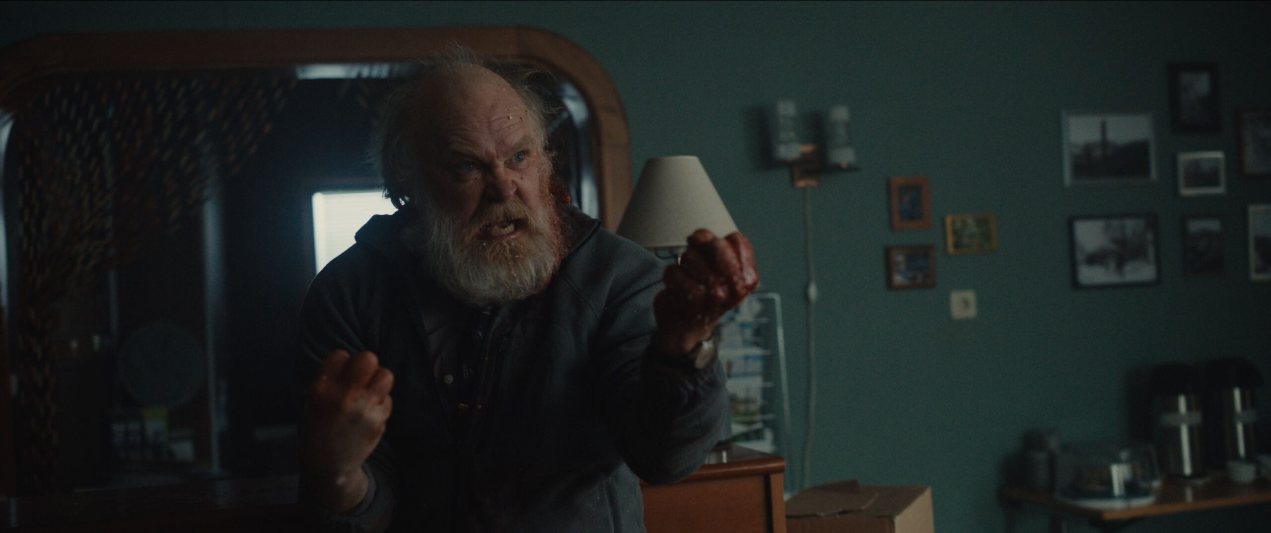 Das ist einerseits ziemlich bitter. Für das Publikum ist das aber nicht verkehrt: Würden die Leute zusammenhalten, könnten sie dem maskierten Mörder richtig etwas entgegensetzen. So aber müssen sie nach und nach sterben, in bester Slasher-Tradition wird die Teilnehmerzahl immer geringer. Regisseur und Co-Autor Patrik Eklund setzt dabei auf Humor. Das betrifft nicht nur die Streitereien innerhalb des Nicht-Teams, wenn überzeichnete Figuren sich irgendwas an den Kopf werfen. Gerade auch die Tötungsszenen sind auf witzig gemacht, wenn in Konferensen die verschiedensten Waffen zum Einsatz kommen. Die wenigsten davon sind als solche konzipiert. Vielmehr werden hier wie in Hunt Her, Kill Her irgendwelche Objekte, die gerade irgendwo rumliegen, zu Mörderwerkzeugen umfunktioniert.