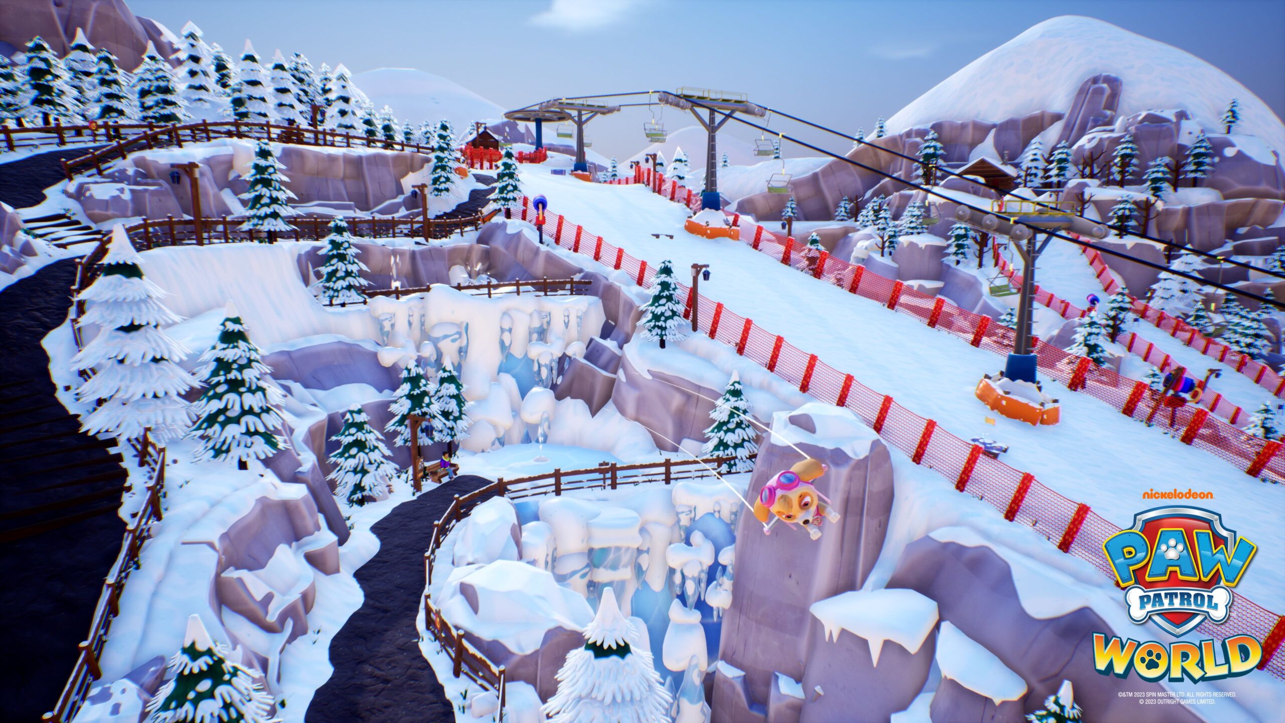 Wobei man sich bei PAW Patrol World darüber streiten kann, ob das überhaupt eine Geschichte gibt. Theoretisch ist da zwar eine, die sich um ein geplantes Fest dreht, welches – wie sollte es auch anders sein? – von dem fiesen Bürgermeister Besserwisser und seinem Kätzchen-Kommando sabotiert wird. Aber das ist nur ein Aufhänger, damit die Truppe durch die Gegend läuft und fährt und dabei ständig irgendwelche Heldentaten vollbringen muss. Genauer gibt es vier große Level, von der Stadt über einen Dschungel und ein Ski-Resort bis zu dem Areal vor einer Burg. Beim Durchstreifen treffen wir zahlreiche Menschen oder Tiere, bei denen irgendetwas gerichtet werden muss. Da müssen mal Spielzeuge aus dem Meer geholt werden, vermisste Tiere gefunden oder auch Objekte repariert.
