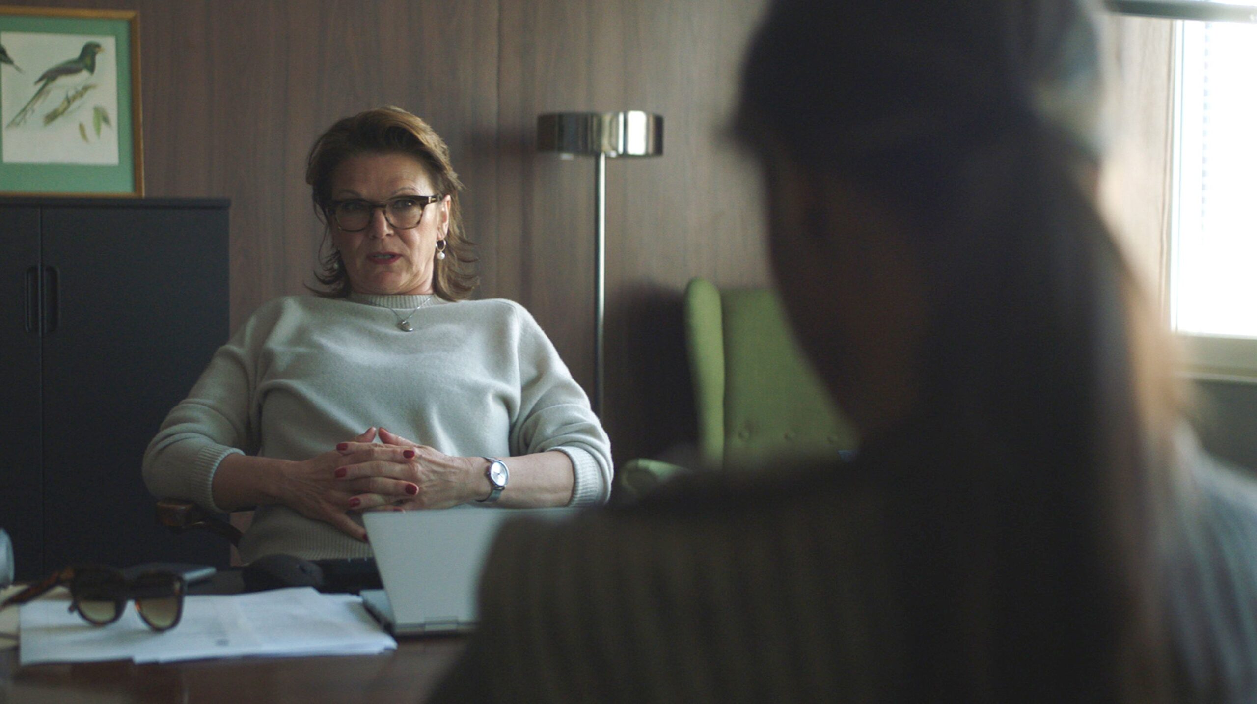 Damit einher gehen geringere inhaltliche Ambitionen. Wo der erste von vier Filmen der neuen Staffel anhand des Beispiels Fußball von Erwartungen und elterlichem Druck erzählte, gegen die junge Menschen kaum ankommen, da fehlt bei Maria Wern, Kripo Gotland: Freier Fall etwas Vergleichbares. Sicher, wir haben hier den Aspekt von Gewalt innerhalb von Beziehungen, was nicht minder wichtig ist. Misshandelte Frauen gibt es auch hierzulande viel zu viele. Wenn diese Gewalt aber von einem skrupellosen Gangster begangen wird, der andere Leute nach Belieben hinrichten lässt, dann ist das ein weniger universelles Szenario. Da geht es weniger um eine Beziehung an sich als vielmehr einen Menschen, der über das Leben anderer verfügt, wie er will. Die Partnerin ist da nur ein Beispiel unter vielen.