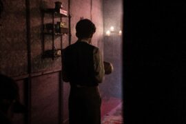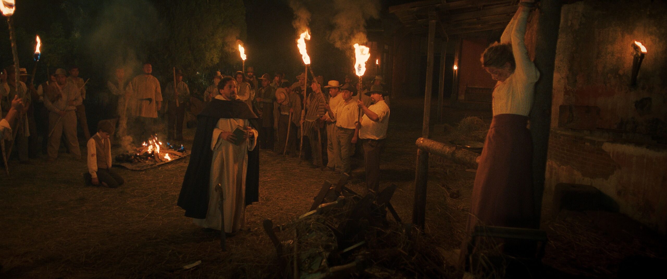 Um den Kontrast noch größer machen zu können, nahm Regisseur und Co-Autor Conor Allyn (Laufen. Reiten. Rodeo.) jedoch ein historisches Setting. Genauer spielt sein Film Ende des 19. Jahrhunderts. Zu der Zeit gab es bereits genügend wissenschaftliche Fortschritte, damit man das Ganze ernstnehmen sollte. Die Religion war aber noch so dominant, dass es ein echter Kampf war, alternative Erklärungen zu etablieren. In In the Fire wird dies am Beispiel eines Jungen demonstriert, der ein wenig eigen ist und deshalb ein idealer Sündenbock ist. Denn wer anders ist, der ist irgendwie falsch. Wobei man zugutehalten muss, dass sich Martin schon etwas komisch verhält. Die zweifarbigen Augen sind ebenfalls ein wenig unheimlich, Wissenschaft hin oder her.