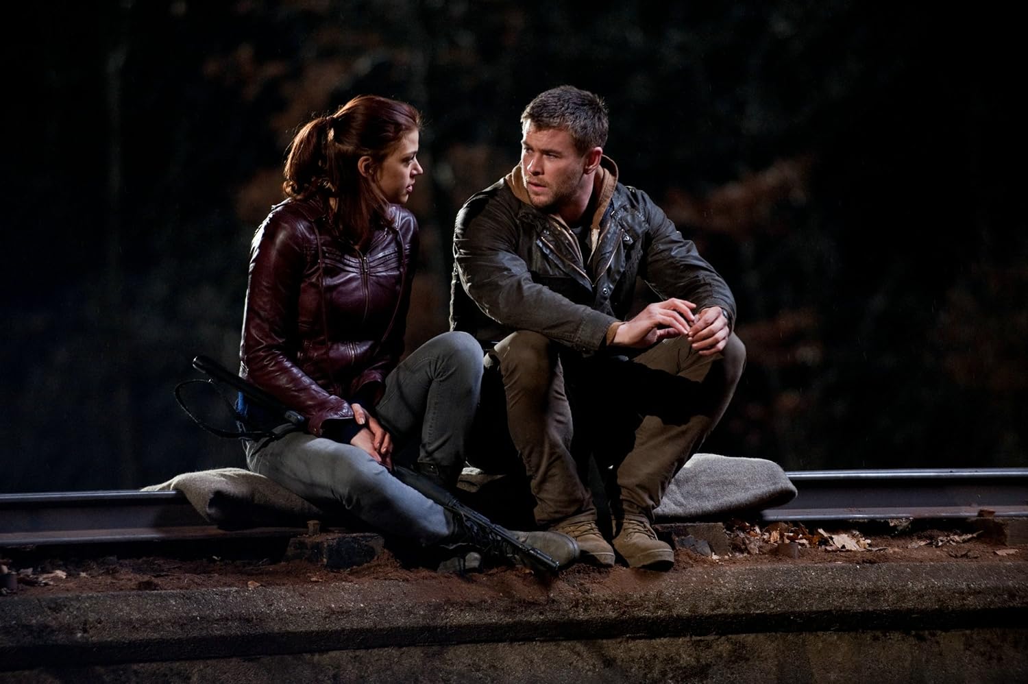 Nicht dass man allgemein von dem Inhalt irgendetwas erwarten sollte. Die Geschichte ist plump, die Figuren sind es auch. Da wird zu Beginn lieblos eine Familienkonstellation entworfen, für die man sich später nicht mehr interessiert. Bei den anderen Figuren wurde erst gar nicht versucht, ihnen Charaktereigenschaften oder Hintergrundgeschichten mitzugeben. Ein paar sind durch die Relationen etwas hervorgehoben, Stichwort Love Interest. Bei den meisten weiß man erst gar nicht, wer sie sein sollen. Das Ensemble wurde dann auch nicht der schauspielerischen Fähigkeiten wegen ausgesucht, sondern dass es die entsprechende Optik mitbringt. Wobei man ihnen kaum zum Vorwurf machen kann, wenn Red Dawn ein uninteressanter Film ist. Sie machen keine schlechte Arbeit. Sie sind einfach nur irgendwie da.