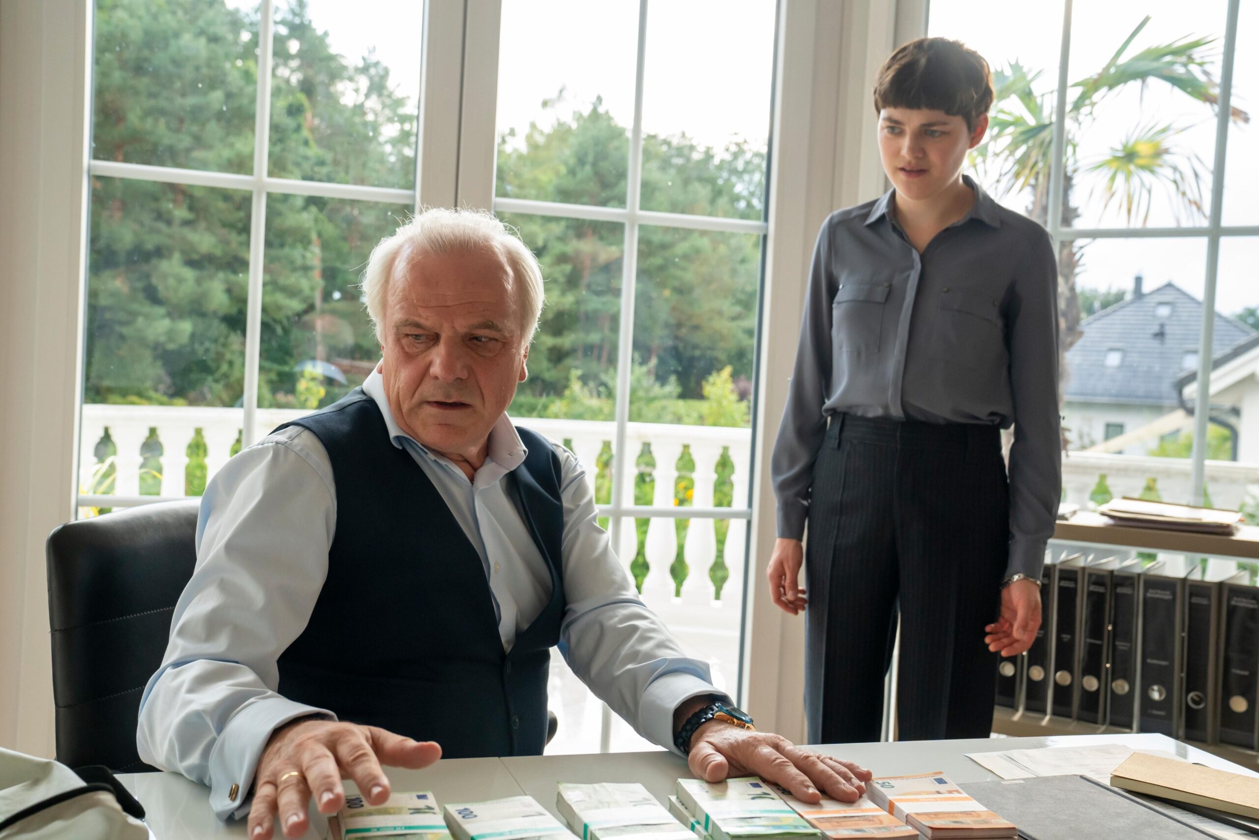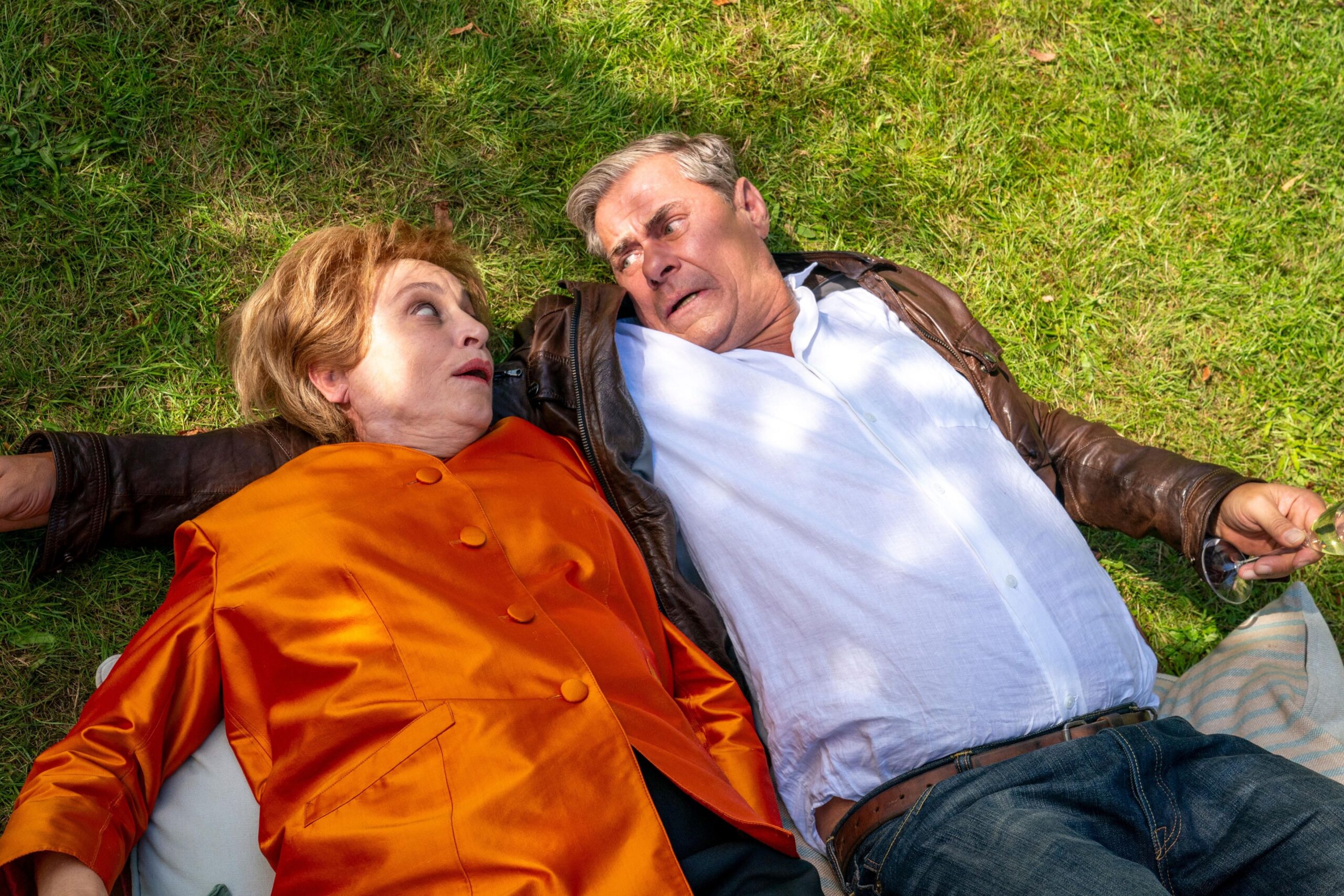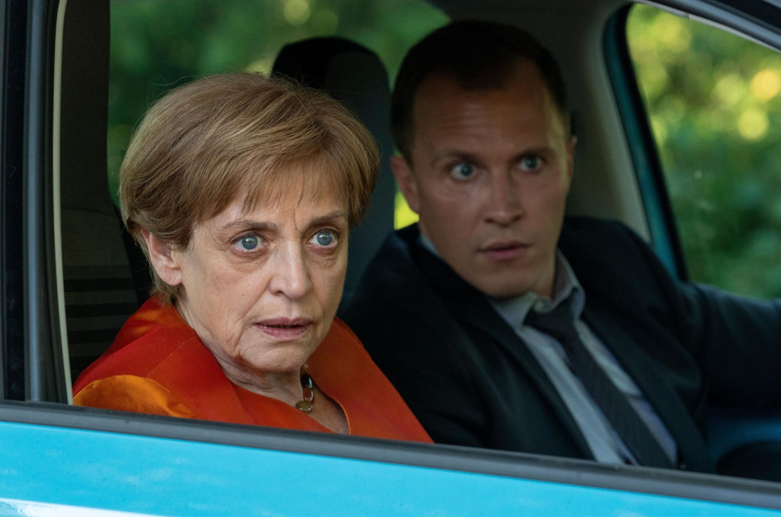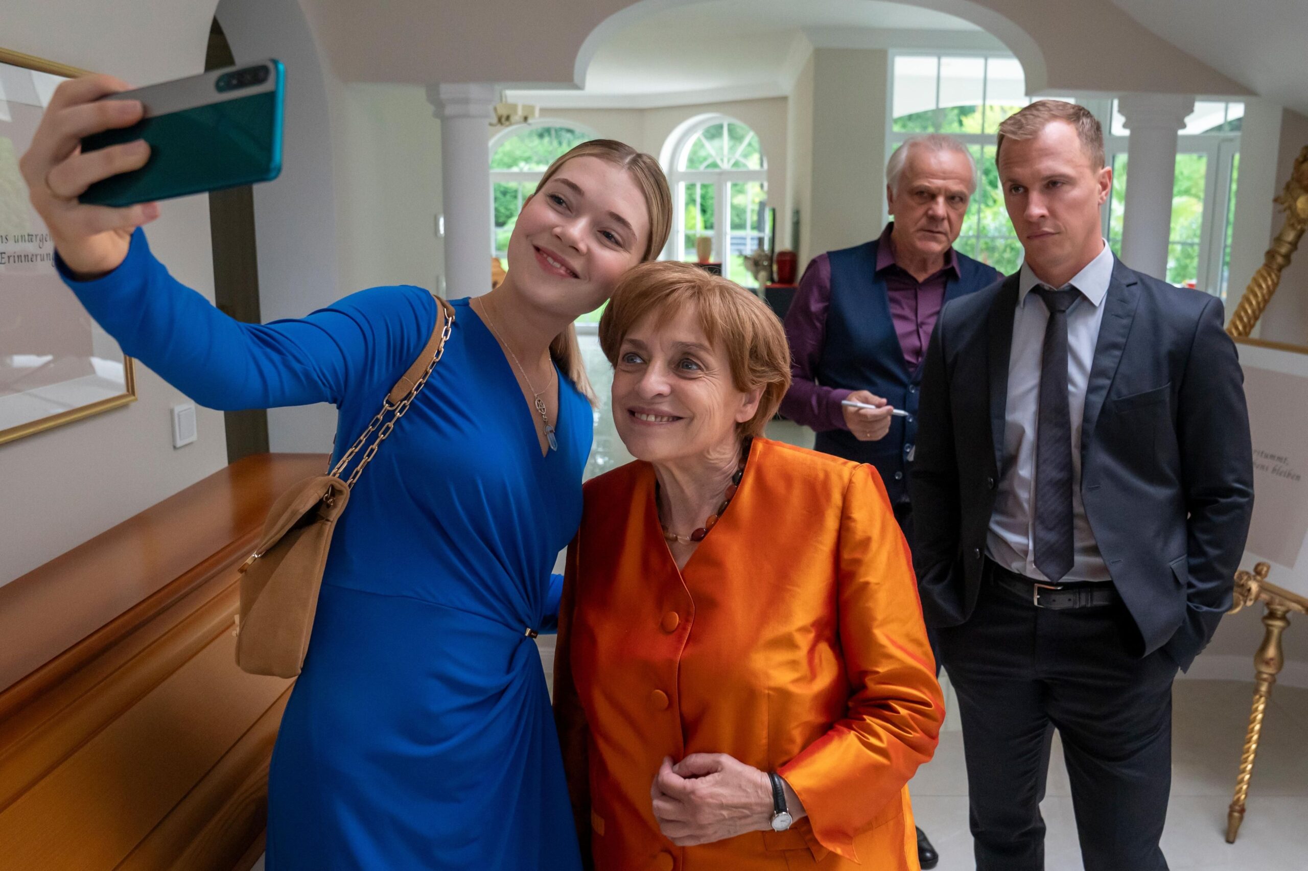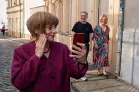 Anspruchsvoll ist der Humor nicht. Da gibt es viel harmlosen Slapstick, während der politische Aspekt eigentlich völlig egal ist. Wenn es an einer Stelle heißt, Trump habe Merkel auf den Fuß getreten, ist das einer der seltenen Verweise darauf, wer hier überhaupt die Hauptfigur ist. Das ist schade, weil Miss Merkel – Ein Uckermark-Krimi: Mord auf dem Friedhof eigentlich eine tolle Besetzung zur Verfügung steht, die auch bei einer stärker satirischen Ausrichtung hätte mitmachen können. Hier ist sie eher unterfordert. Wobei Merten dem Film schon guttut und noch einmal eine andere Dynamik hineinbringt. Thalbach kann man eigentlich auch keinen Vorwurf machen. Durch die leisen romantischen Gefühle, die Merkel gegenüber Kunkel pflegt, kann sie etwas mehr von sich zeigen.
