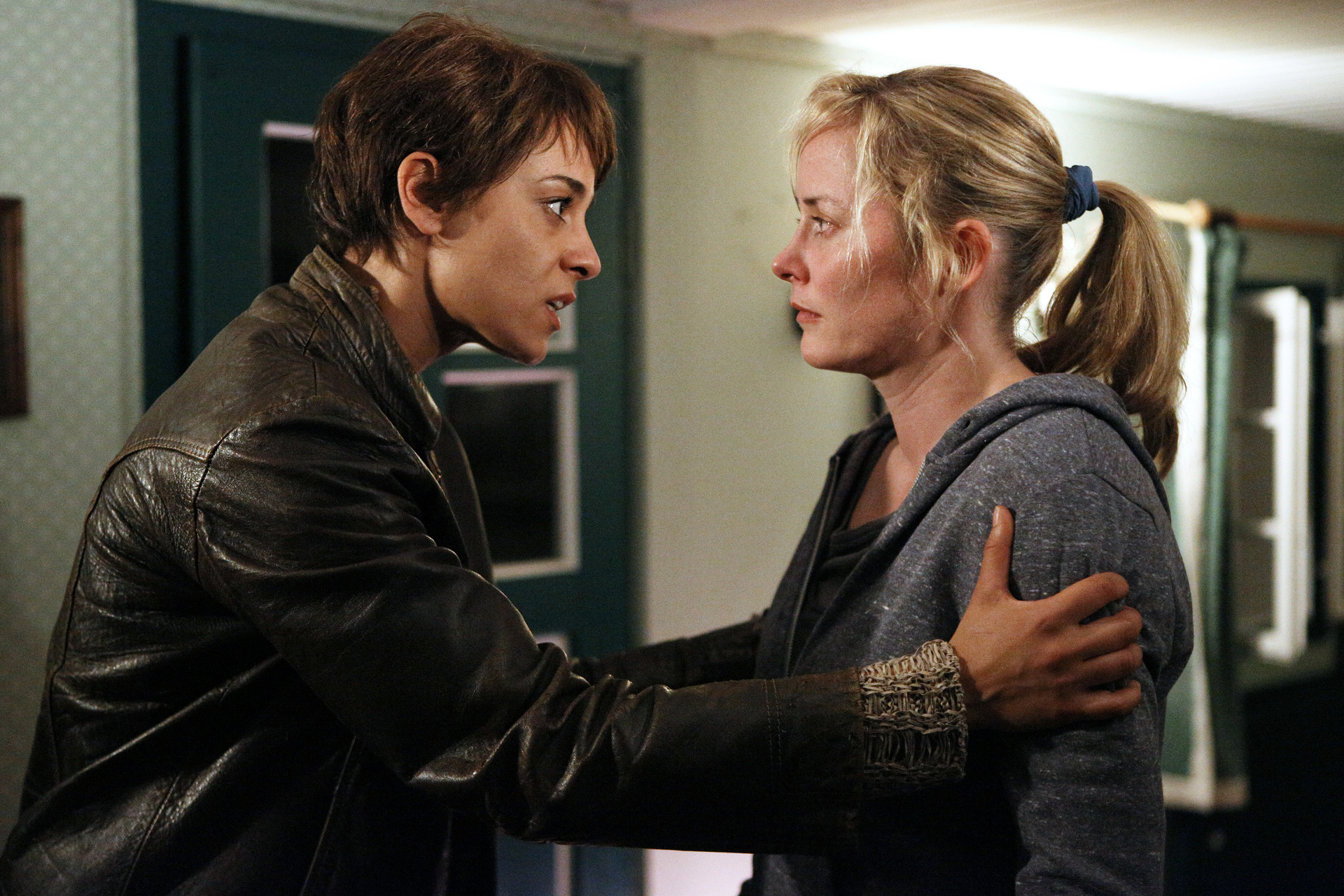 Der Film ist dann auch eigentlich zwei Filme in einem. Auf der einen Seite handelt es sich hier um eines dieser Dramen, bei denen eine Zusammenkunft dazu führt, alte Geschichten auszugraben und von den Wunden zu sprechen, die man einander zugeführt hat. Gekoppelt wird das an einen Home-Invasion-Thriller, wenn die fünf Frauen den drei Männern, denen sie unterwegs begegnet sind, ausgeliefert sind. Später wandelt Blutsschwestern dann auch noch auf den Spuren des Krimiklassikers Das letzte Wochenende, wenn es darum geht ein Verbrechen aufzuklären. Nicht ohne Grund verwendete ZDF seinerzeit bei der Erstausstrahlung den Titel Die Tote in der Berghütte, bevor dieser bei späteren Ausstrahlungen in den heutigen umgewandelt wurde.