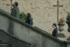 Bei einem solchen Szenario gibt es grundsätzlich zwei Möglichkeiten, in welche Richtung das gehen kann. Entweder macht man einen richtigen Krimi draus, bei dem die Hauptfigur ein Verbrechen aufklären will. Die deutsche Reihe Auris ist ein Beispiel dafür. Oder man macht eine Komödie daraus, die das Arbeiten an einer solchen True Crime Doku durch den Kakao zieht. Bodkin macht beides ein wenig. So überwiegen zu Beginn die humoristischen Szenen, wenn der große Podcaster in die Kleinstadt kommt und dort alles durcheinanderbringt. Das geht sogar mit ein wenig Culture Clash einher, wenn der US-Amerikaner mit der irischen Landbevölkerung zu tun hat. Bei Letzterer gibt es dann auch ein paar skurrile Gestalten, wodurch die Serie zeitweise an Inspector Barnaby erinnert.