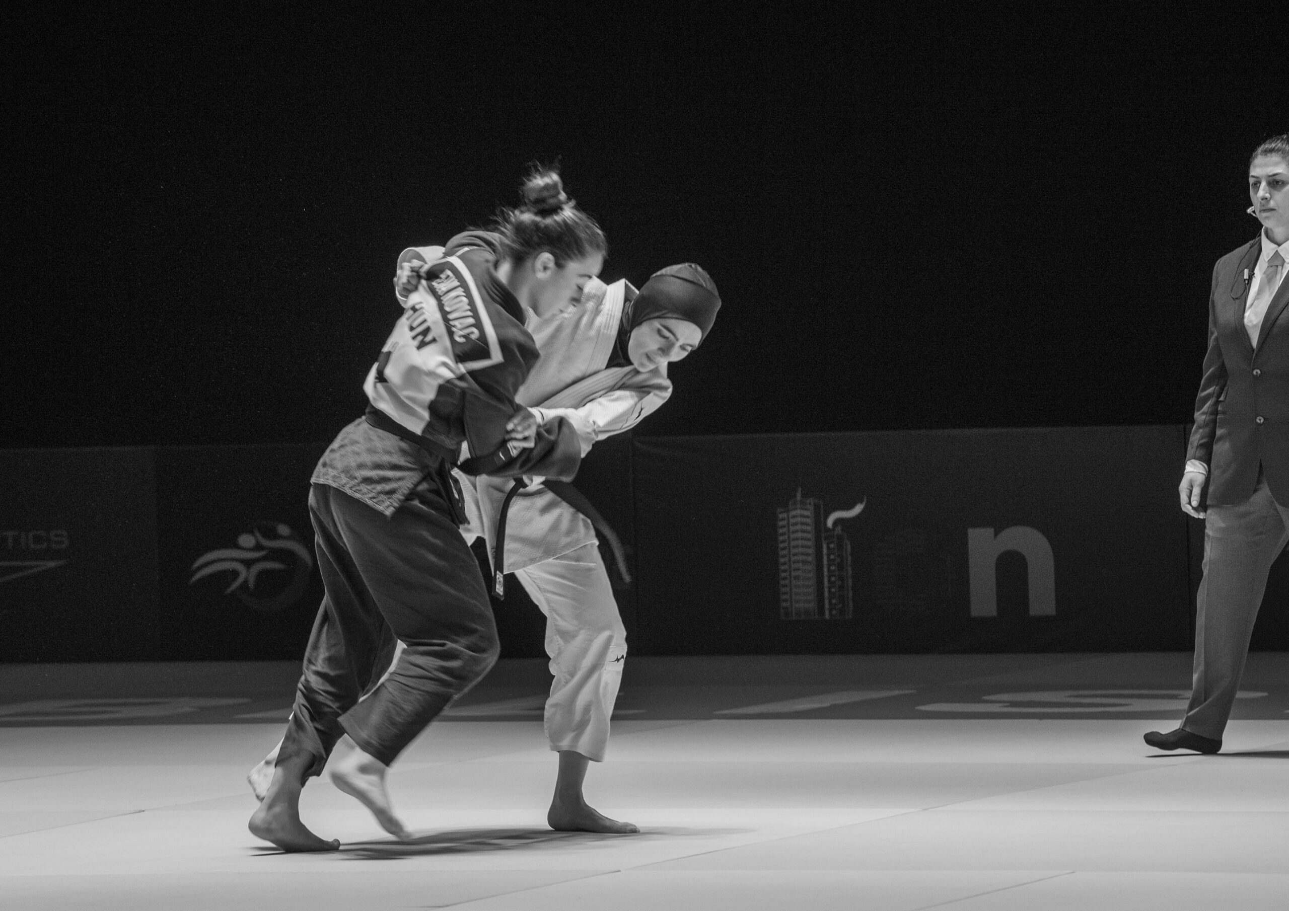 Eine wirkliche Begründung dafür wird nicht geliefert. Auch in anderer Hinsicht bleiben Fragen offen. Weshalb beispielsweise die Iranerin schon sehr früh zur Aufgabe gezwungen werden soll, obwohl sie der israelischen Konkurrentin erst im Finale begegnen würde, wird nie klar. Da wäre es konsequenter gewesen, erst gar nicht in den Wettbewerb zu starten. Aber man musste in Tatami nun einmal das Problem früh etablieren, damit sich die Ereignisse immer weiter zuspitzen können. Hätte Leila sofort eingewilligt, gäbe es nun einmal keine Geschichte, irgendwie müssen die knapp zwei Stunden gefüllt werden. Das klappt mal besser, mal schlechter, zwischendurch kommt es schon zu Redundanzen und Wiederholungen. Die Drohungen gegenüber Leila und Maryam sind letztendlich nur Variationen, weshalb der Film schon auf der Stelle tritt.