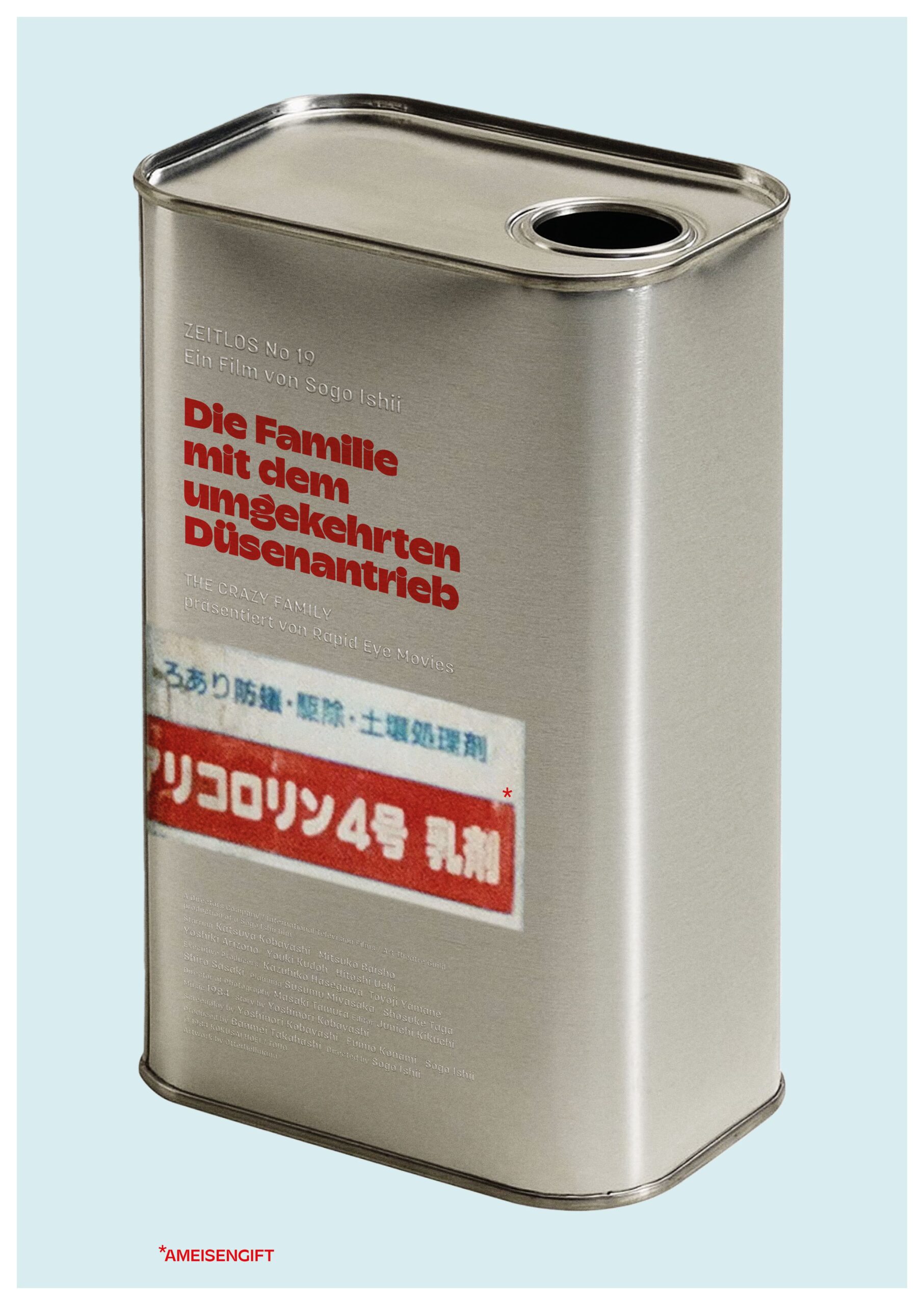 Die Familie mit dem umgekehrten Düsenantrieb ist der erste Film, den Regisseur Gakuryu Ishii (Sogo Ishii) unter dem Banner der Director’s Company verwirklichte, einer Produktionsfirma, die, wie der Name schon andeutet, Filmemacher die Möglichkeiten gab, Filme nach ihren Vorstellungen zu machen. Mit Werken wie Burst City bewies Ishii seine Nähe zur Punk-Bewegung, besonders der damit verbundenen Anti-Establishment-Haltung, die sich bis heute durch seine Filme zieht. Gegen den Konformismus, das Untertanentum sowie die Ignoranz richten sich seine Geschichten, wobei er nicht selten Unterstützung erhält von japanischen Punkbands, die in seinen Filmen auftreten oder zumindest zu deren Soundtrack beisteuern. Crazy Family oder Die Familie mit dem umgekehrten Düsenantrieb bildet keine Ausnahme, denn sie beißende Satire auf Familien- und Rollenbilder ist eine anarchische Komödie, die mit der Zeit immer weiter aus dem Ruder läuft und nichts weniger als eine Dekonstruktion dieser Bilder anstrebt.