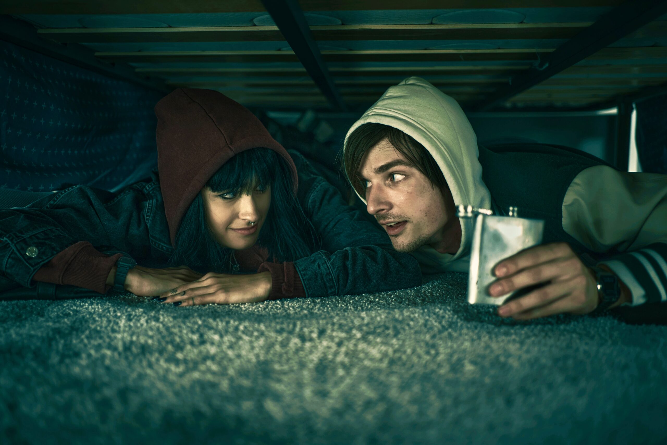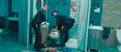 Das Thema ist dabei recht aktuell. Wenn wir hier sechs junge Menschen, die gegen die Abholzung von Regenwäldern protestieren, indem sie in einem Warenhaus vandalieren, dann werden nicht wenige an die mindestens kontroversen Aktionen der Letzten Generation denken. Richtig gut kommt die Aktivistengruppe in Wake Up dann auch nicht weg. Sie ist selbstgerecht, hält sich für schlauer, als sie ist, konstruktiv ist ihr Weckruf auch nicht gerade. Das wird sie für manche zu einem idealen Feindbild machen, wenn sie zur Zielscheibe der beiden Sicherheitsmänner werden. Wobei die Sympathien immer noch eher bei ihnen liegen, da Kevin schon früh als psychopathischer Sadist gezeigt wird, der selbst seinem eigenen Kollegen nicht geheuer ist. Und das wird noch viel schlimmer, wenn er mit der Zeit das Tier in sich entdeckt.