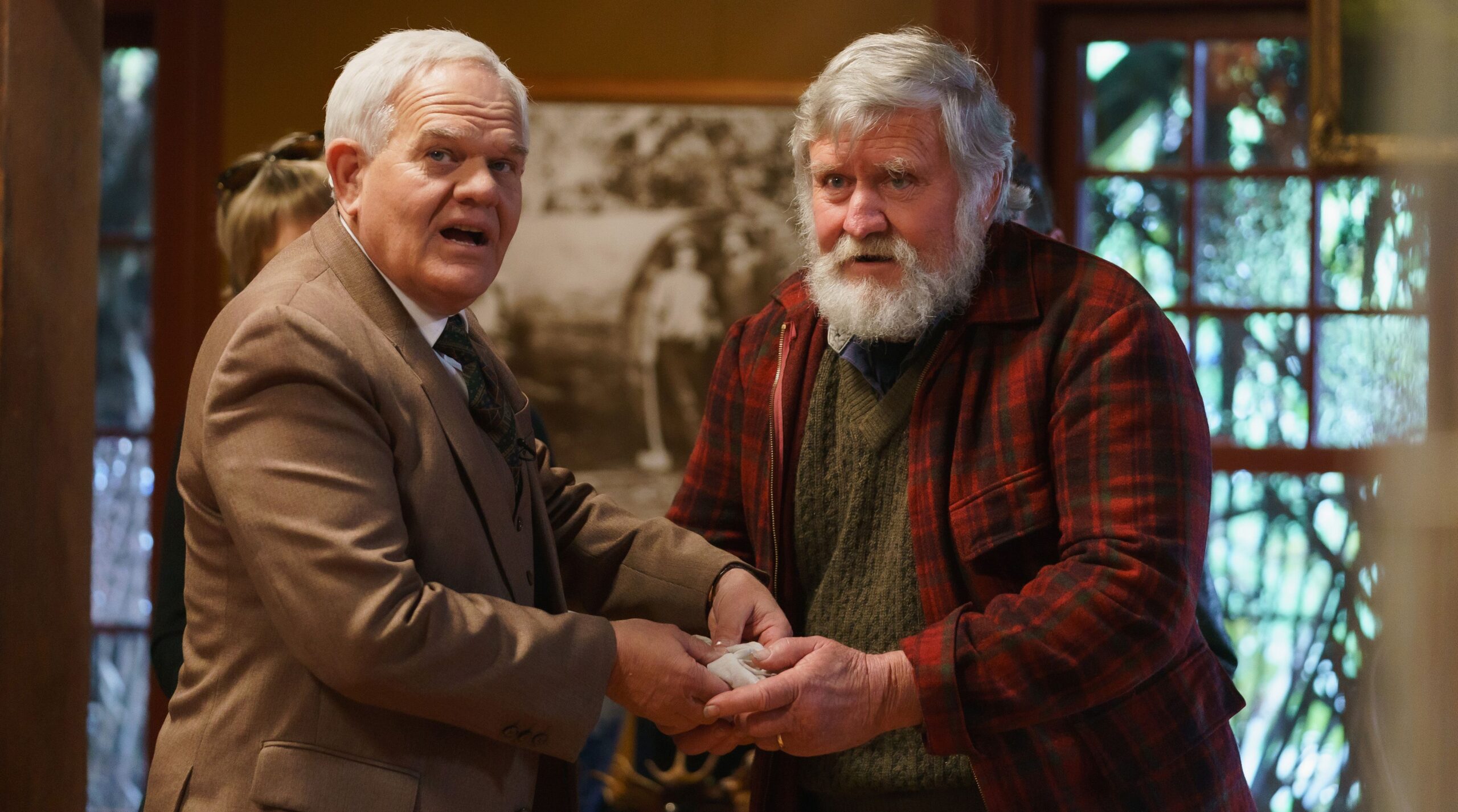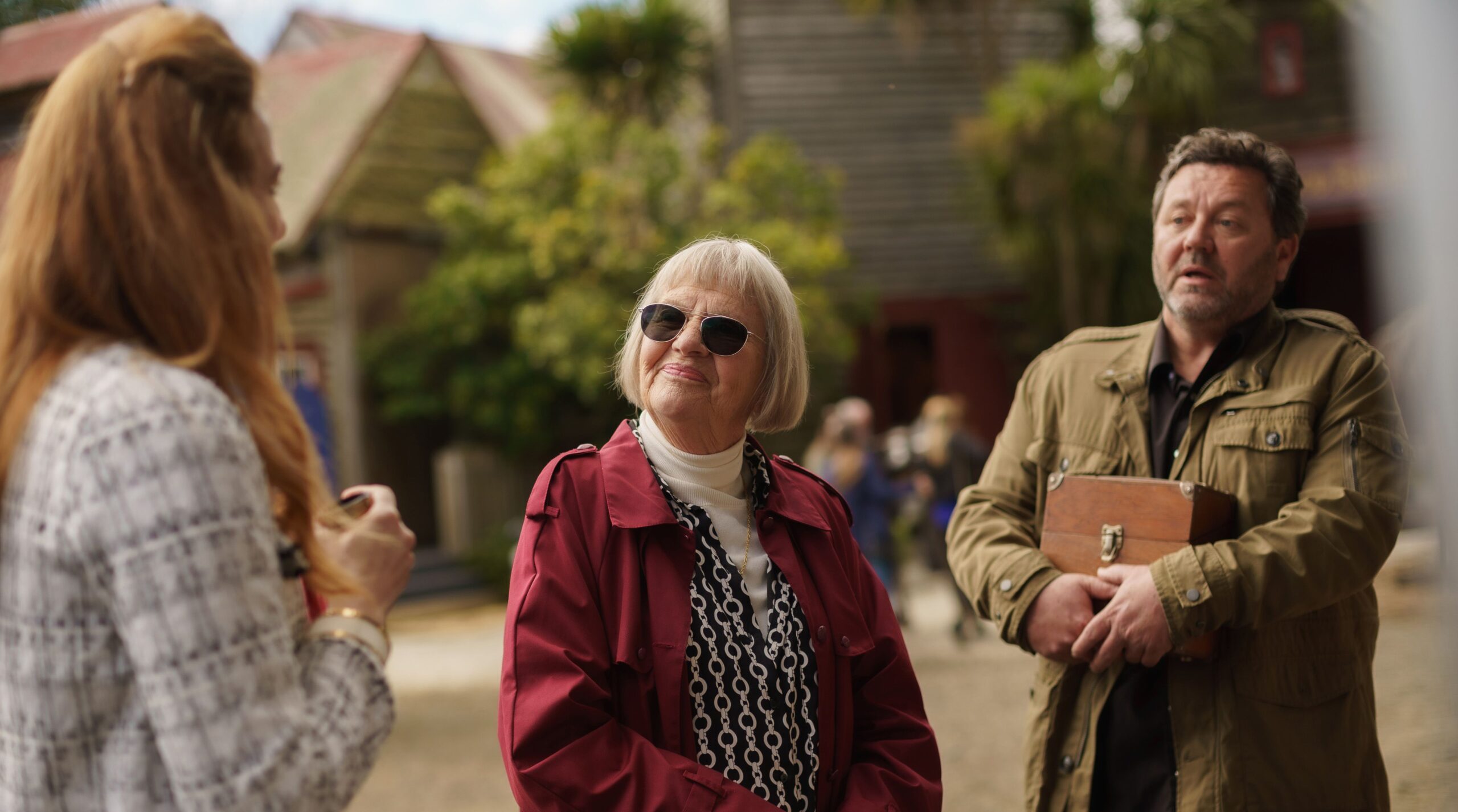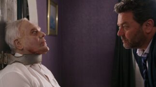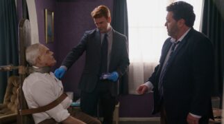 Aber diese Reihe ist ohnehin zeitlos, weshalb es mehr oder weniger egal ist, wann sie gezeigt werden. Gegen Ende der Folge sehen wir zwar, wie zwei Leute sich per Video unterhalten, womit klar wird, dass die Geschichte schon in der Gegenwart spielt. Ansonsten gibt es hier aber klassische Kost, die ohne große Änderungen auch vor Jahrzehnten schon so hätte gedreht werden können. Ein aufgeblasener, selbstverliebter Fernsehmoderator wird ermordet? Das geht immer, losgelöst vom Zeitgeist. Bei Brokenwood – Mord in Neuseeland: Das Bild des Grauens wird zudem noch etwas in die Vergangenheit gereist, indem es in der Serie innerhalb des Films um Antiquitäten geht. Der englische Originaltitel The Garotte and the Vinkelbraun verweist auf das Folterinstrument Garotte, welches in Spanien bis 1974 in offiziellem Einsatz war, sowie auf ein Gemälde. Und als wäre das nicht schon altertümlich genug, geht es auch viel um alten Adel.