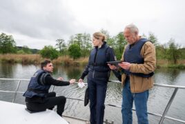 Der Film ist insgesamt auch von einer recht ruhigen Machart. Zwar wird es nicht bei der einen Leiche bleiben, später kommt es zudem zu einer brenzligen Situation. Dennoch, insgesamt ist das hier nichts, das man sich anschauen sollte in der Erwartung von konstanter Hochspannung. Dafür kommt hier mal ein Publikum auf seine Kosten, das Lust hat auf einen traditionellen Krimi. Auch wenn es in Polizeiruf 110: Wasserwege unglückliche Menschen gibt, beschränkt man sich nicht darauf, wieder irgendwelche kaputten Psychopathen auf Mörderjagd zu schicken. Der Fall steht im Vordergrund. Es gibt auch ausreichend Verdächtige, unter denen man sich die richtige Person aussuchen darf, der typische Whodunit eben.