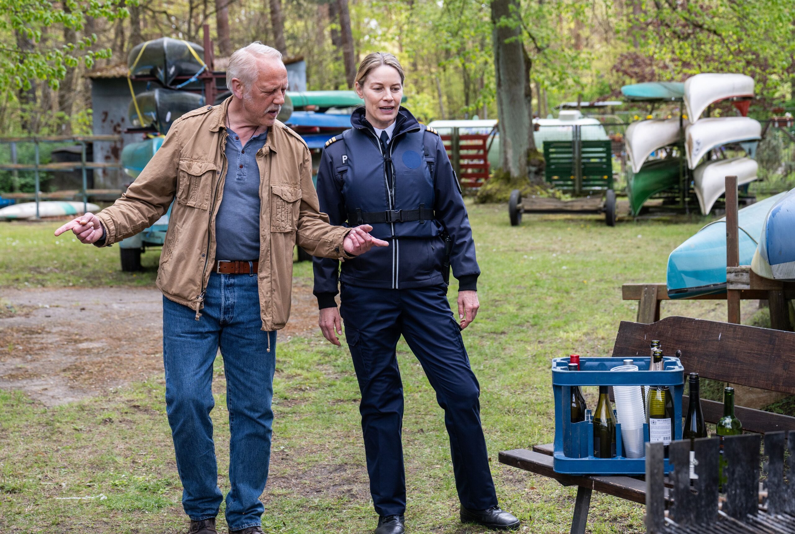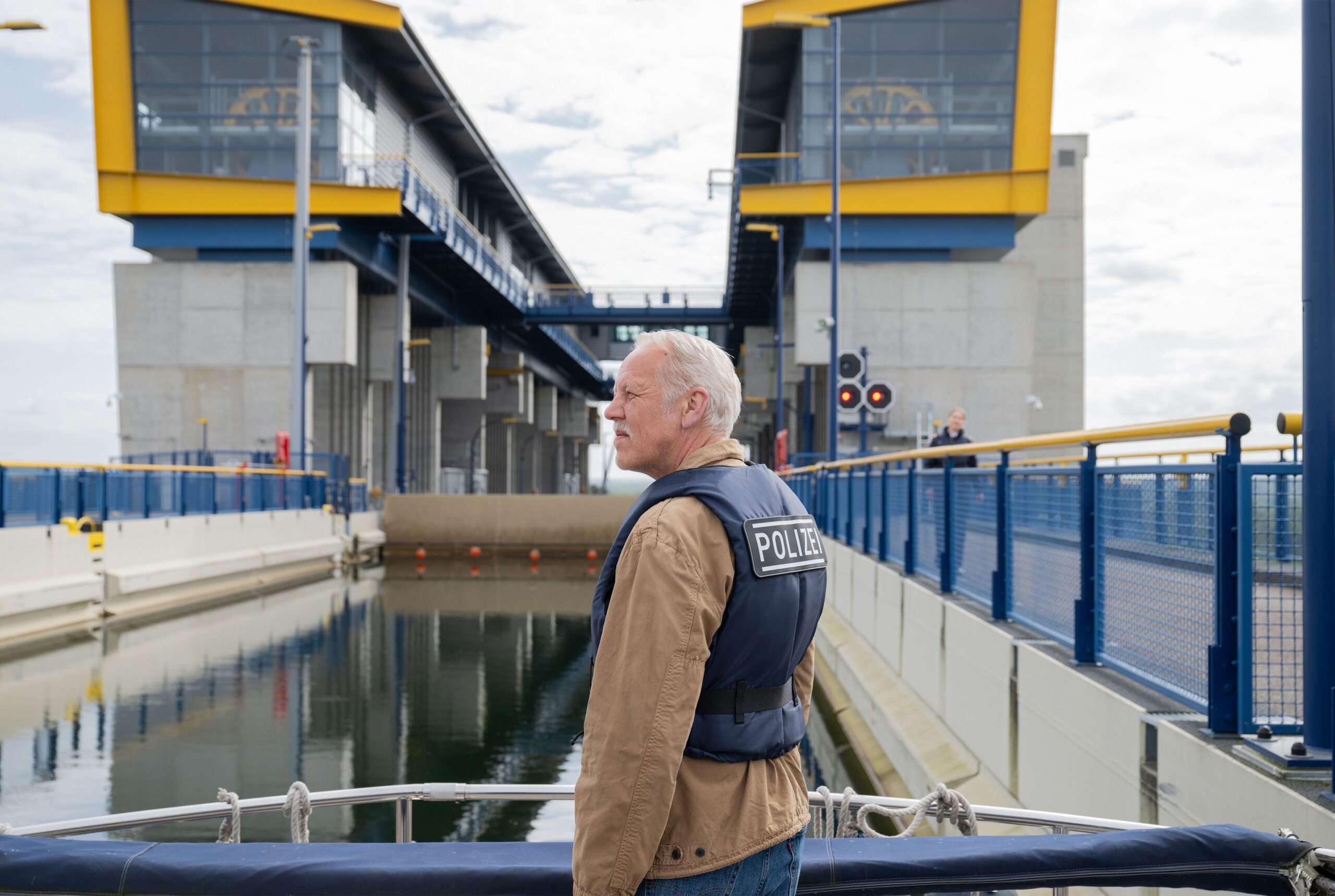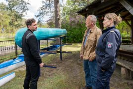 Der Titel ist da nicht übertrieben. Da wäre das Kanu, in dem die Tote gefunden wurde. Die Lösung muss zudem irgendwo am Fluss zu finden sein, weshalb wir regelmäßig auf Schiffen sind oder am Hafen. Das klingt idyllisch, ist es aber nicht. Mit dem konstant grauen Himmel, der höchstens erahnen lässt, dass irgendwo hinter den Wolken etwas Blaues versteckt ist, macht man eher wenig Werbung. Auch die Natur und der Fluss wirken wenig einladend. Aber das muss ja nicht verkehrt sein. Wo andere ARD-Krimis gern mit dem Kontrast zwischen Postkartenmotiv und brutalem Mord arbeiten, da ist die Atmosphäre in Polizeiruf 110: Wasserwege ständig mindestens melancholisch, an der Grenze zur Depression. Immer wieder wirken die Menschen hier verloren, im Stich gelassen.