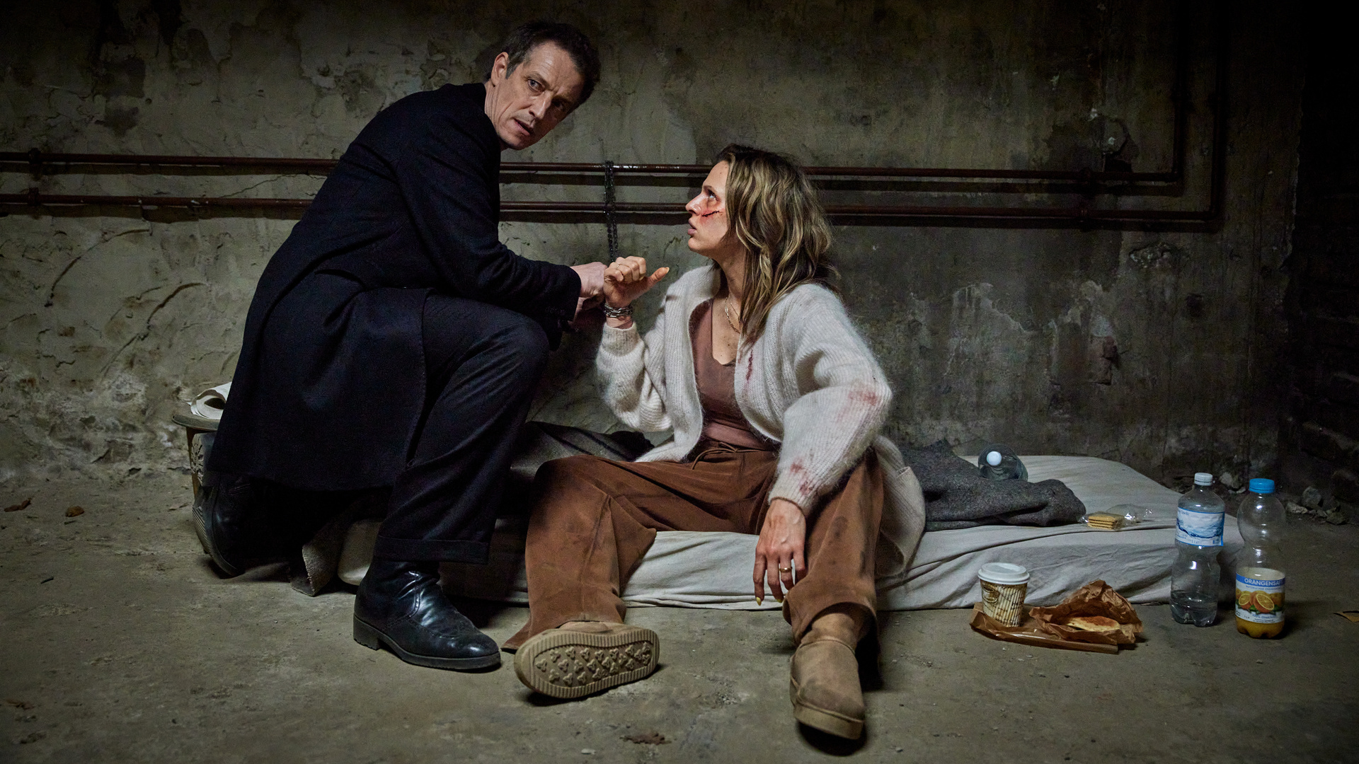 Das klappt mal besser, mal schlechter. Entführungen sind eigentlich ein probates Mittel, um beim Publikum für Nervenkitzel zu sorgen, wenn man mit dem Opfer mitfiebert. Hier weiß man allerdings die ganze Zeit, wie es Irina geht, da sie dauernd zu sehen ist. Man hat auch nicht wirklich das Gefühl, dass ihr eine unmittelbare Gefahr droht, trotz des vorangegangenen Mordes. Wenn überhaupt besteht die Spannung von Stralsund: Kaltes Blut darin, dass sich alle fragen dürfen, wer hinter der Entführung steckt. Allerdings wird selbst das grob verraten, wenn wir wissen, dass das mit irgendeinem Deal mit den Russen zu tun haben muss. Kurz wird zwar mal eine Alternative ins Spiel gebracht. Dennoch, zum Rätseln ist da weniger.