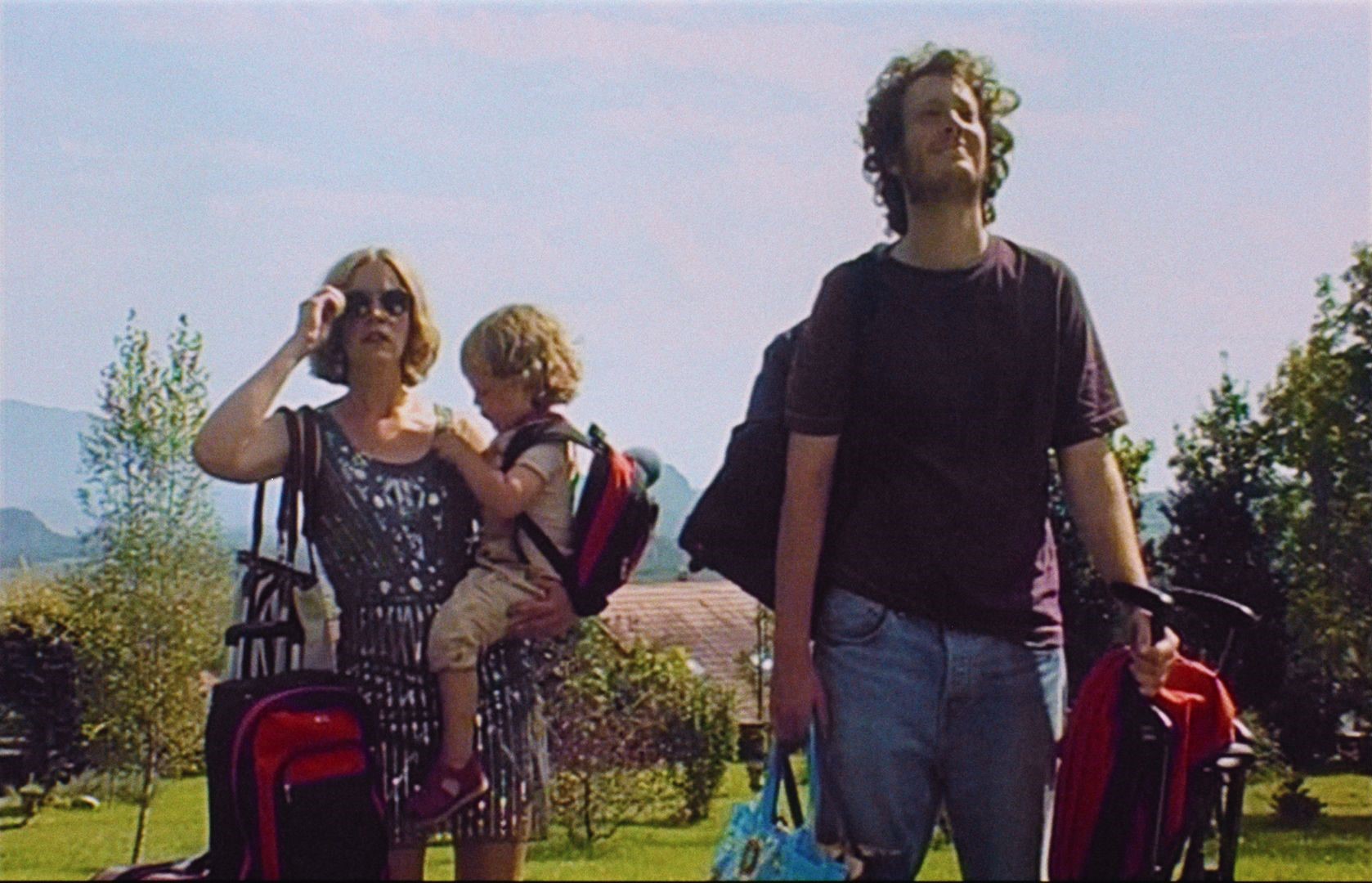 Von Anfang an präsentiert sich Arthur & Diana wie eine Ode an Menschen, die vor dem Jahr 2000 geboren wurden. Dank Camcorder, 16mm und flimmernden Bildrändern lösen bereits die ersten Momente nostalgische Assoziationen zu 90er-Fernsehwerbungen und den alten Familienurlaubs-VHS-Tapes aus, auch wenn die Nutzung eines Smartphones als Navigationssystem diese Immersion etwas zunichte macht. Um das auszugleichen, benutzt Diana kurze Zeit später ein Nokia 3310; ein tolles Gerät, um etwas Digital Detox zu betreiben. So wohlig, farbintensiv und körnig die Geschehnisse dargestellt werden, so düster sieht es zeitweise unter den Geschwistern aus, die kaum eine Gelegenheit auslassen, sich gegenseitig zu provozieren. Auch Sohn Lupo ist oftmals mehr Bengel als Engel (zugegebenermaßen trotzdem süß, mausert sich ab und an gar zum Showstealer).