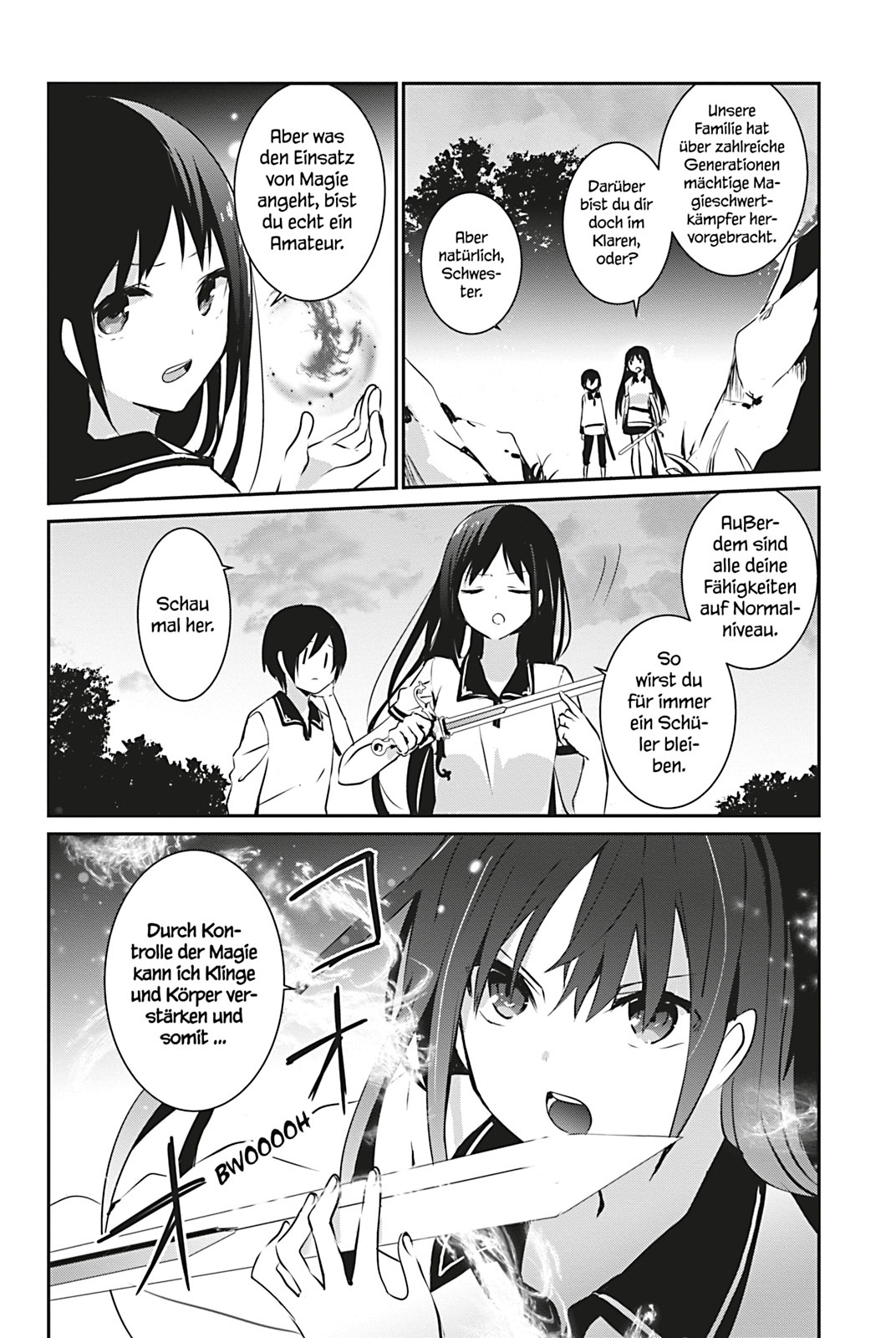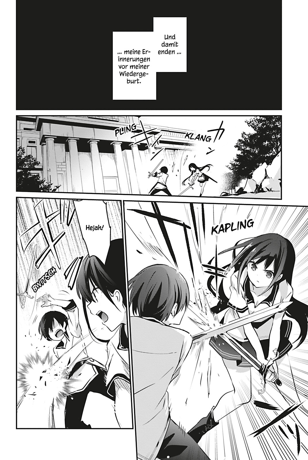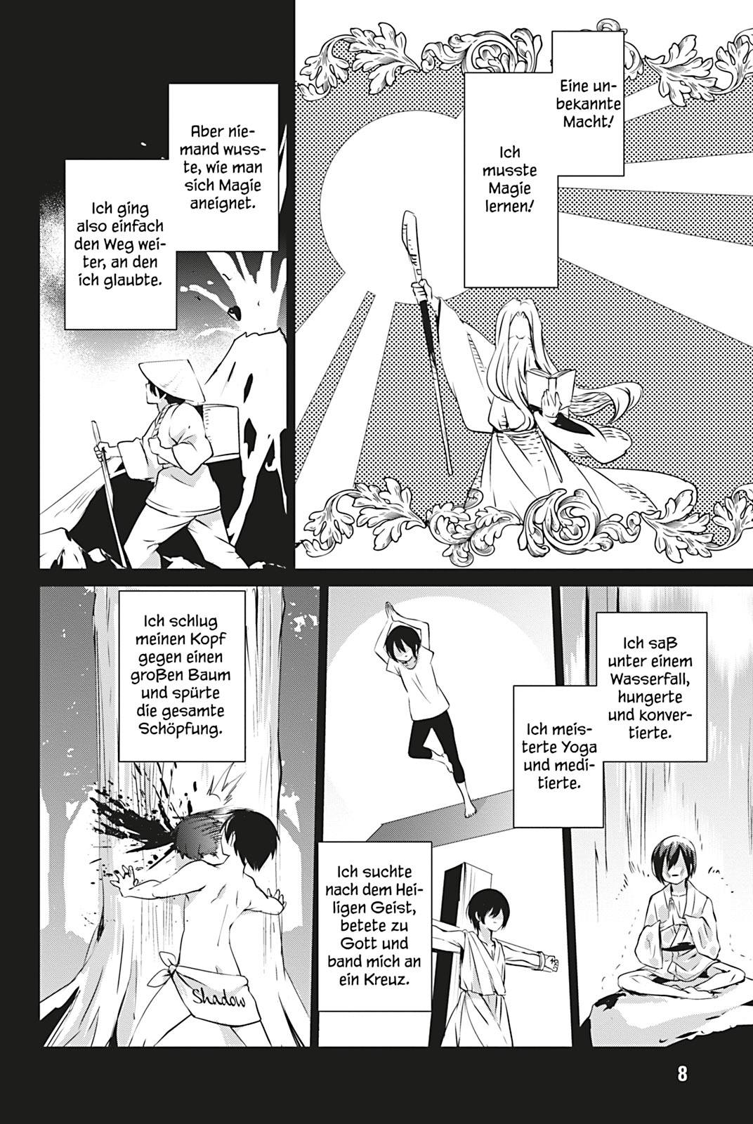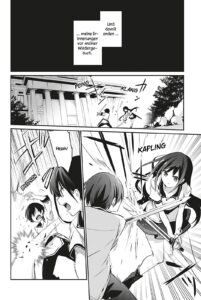Optisch ist der Manga hingegen wenig erwähnenswert. Weder bei den Figurendesigns noch den Settings ist da etwas dabei, das größeren Wiederkennungswert hat. Das ist schon recht generisch. An manchen Stellen irritiert zudem, dass mit so vielen Bewegungslinien gearbeitet wurde, dass man nicht mehr erkennt, was da eigentlich gezeigt werden soll. Insgesamt ist The Eminence in Shadow in der Hinsicht aber nicht so störend, dass das zu einem Problem würde. Der erste Band des Comics ist unterhaltsam und kurzweilig, liest sich flott und ist sicher einer der vielversprechenden Beispiele der aktuellen Isekai-Dauerbeschallung.