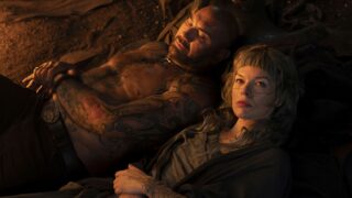 Besonders bei den weiblichen Charakteren findet keinerlei Entwicklung statt – stattdessen verfallen sie alle dem „geheimnisvollen Charme“ von Dave Bautistas Boyce, ohne dass eine gemeinsame Anziehung jemals glaubwürdig inszeniert wird. Die Nebenhandlung innerhalb der Underground City, die sich um Königin Melange, den Patriarchen und die unterdrückte Bevölkerung dreht, dient lediglich als rückwirkende Exposition und bleibt darüber hinaus weitgehend uninteressant. Immerhin überrascht In The Lost Lands im letzten Drittel mit einem soliden Twist. Der darauffolgende Showdown bleibt jedoch aufgrund von Dave Bautistas anfänglichem Monolog bedeutungslos – schließlich weiß das Publikum bereits, dass er überleben wird, um seine Geschichte zu erzählen.