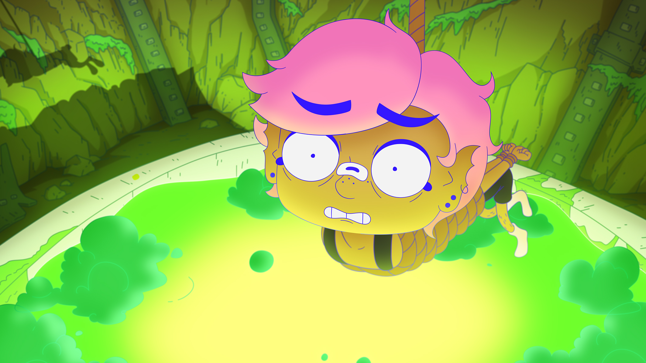 Nur dass das Drumherum alles andere als typisch ist. Die animierte Science-Fiction-Komödie setzt ähnlich zu Rick and Morty auf absurden Humor, der gerne auch mal etwas derber werden kann. Da darf dann schon einmal ein personifiziertes Geschlechtsteil durch die Gegend tanzen. Zwischendurch wird etwas mit der Sprache gespielt. Aber auch Gewalt kommt vor: Nur weil hier vieles pink ist, heißt das nicht, dass der Film sich vor Blutrotem fürchten würde. Oder jeder anderen Farbe, Lesbian Space Princess ist schon ein sehr knalliges Werk. Und ein sehr geschäftiges: Viel Zeit zum Ausruhen hat das Publikum nicht, da passiert ständig etwas. Nur selten geht das Duo mal vom Gaspedal und bietet der Protagonistin die Gelegenheit, sich auch einmal mit ihren Gefühlen auseinanderzusetzen.