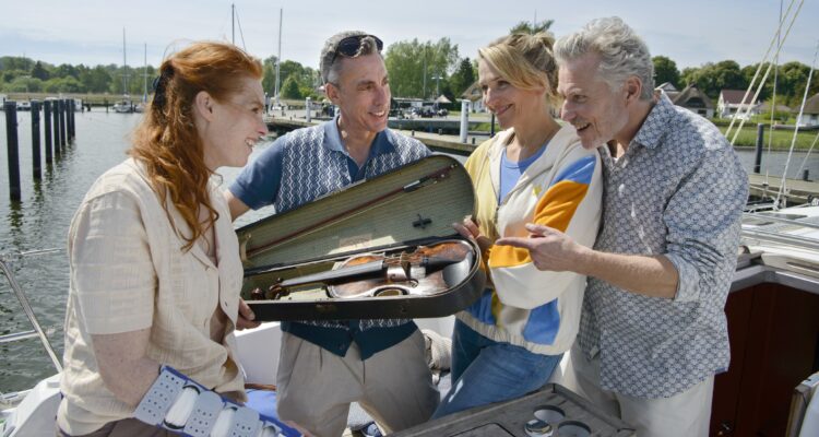 Der Film nimmt dabei Bezug auf vorangegangene Ereignisse. Zumindest die sich weiter intensivierende Beziehung zwischen Nora und Max Jensen (Bernhard Piesk) setzt die Geschichten fort, die in den letzten Folgen erzählt wurden. Da kündigt sich auch ein wichtiger nächster Schritt an, wenn die Angelegenheit noch ernster wird. Praxis mit Meerblick: Volle Kraft voraus macht das aber mit angezogener Handbremse, weshalb sich das Publikum nicht ganz sicher sein kann, worauf das in Zukunft hinauslaufen wird. Wobei das auch daran liegt, dass dieser Aspekt wirklich nur ein kleiner Nebenschauplatz ist. Das Hauptaugenmerk gilt dann doch den Geschichten innerhalb dieser alten Clique, die noch einmal zusammenkommt.