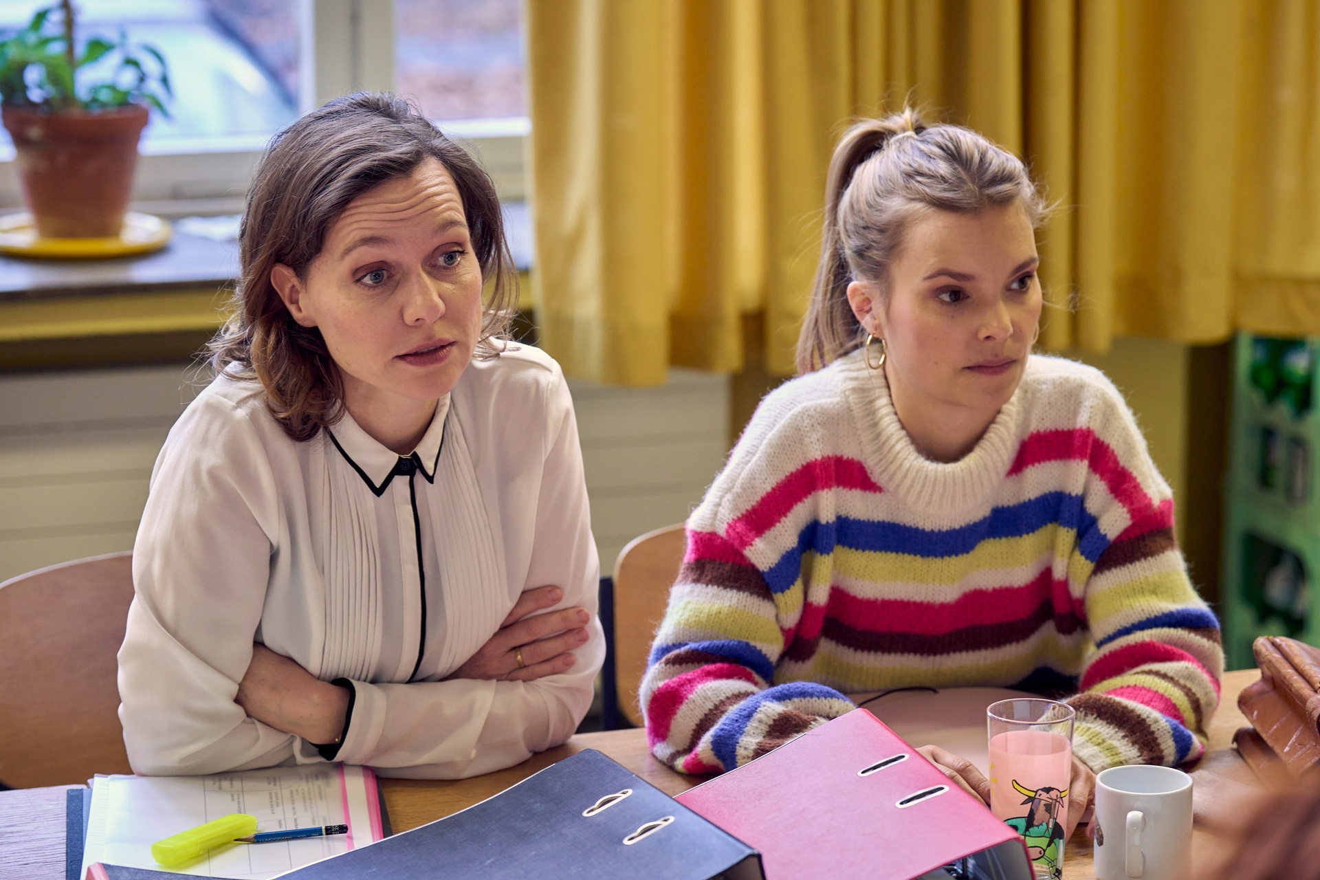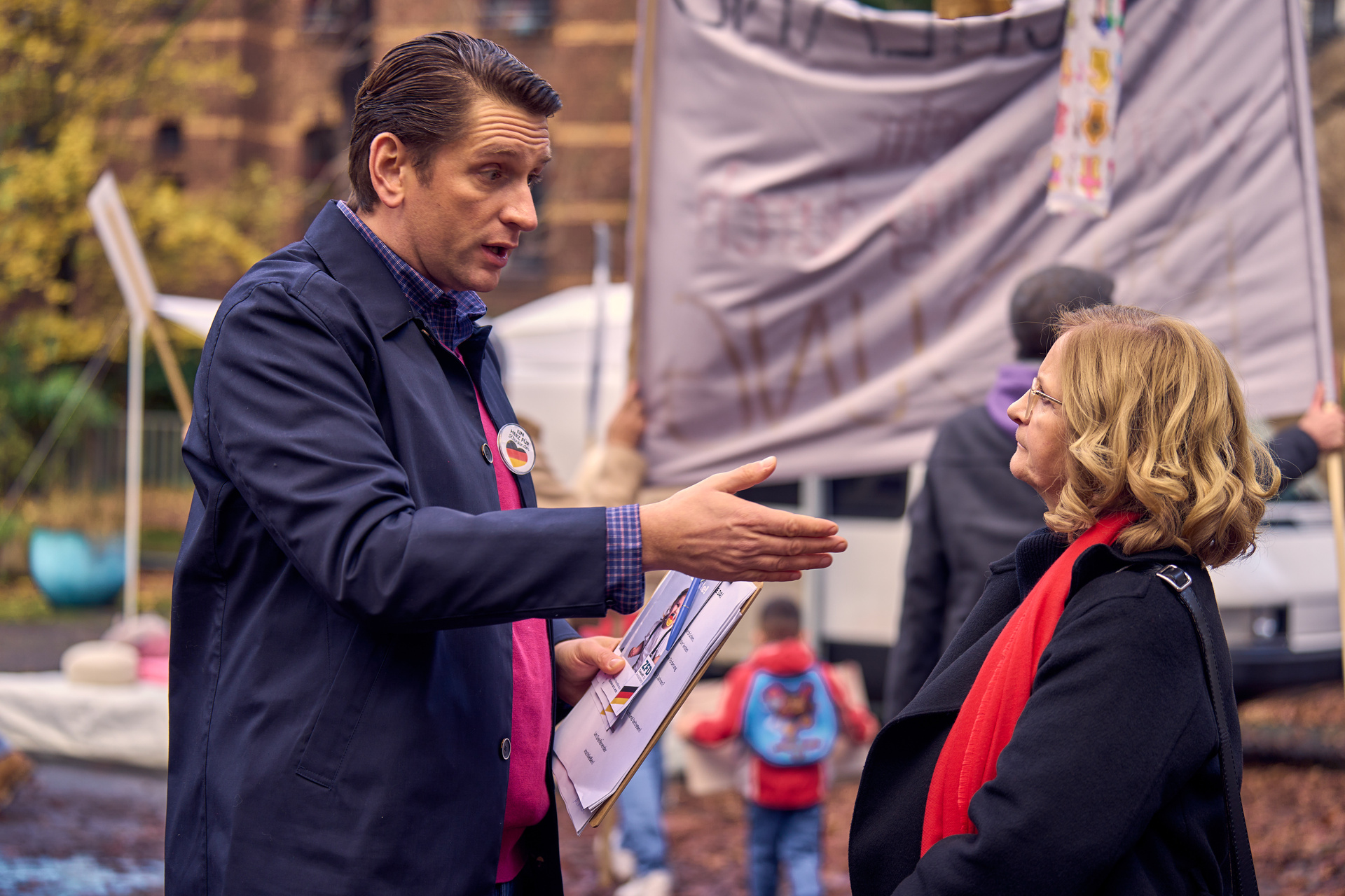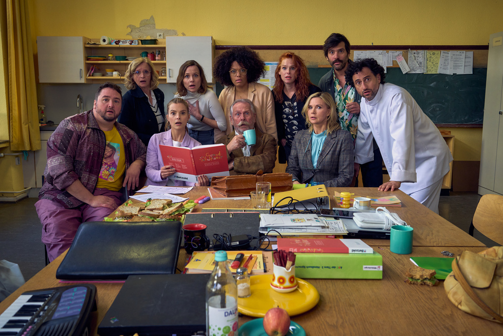 Dabei gibt es mehrere Anknüpfungspunkte. Zum einen sind da einige wiederkehrende Figuren, verbunden mit demselben Cast. Außerdem wurden sowohl die Serie wie auch der Film als Mockumentary umgesetzt, also als fiktionale Geschichte, die wie eine Dokumentation wirken soll. Außerdem ist natürlich das Thema ähnlich: Während im einen Fall die Eltern eine Kita gründen, versuchen sie sich beim zweiten als Lehrkräfte, beide Male, weil das öffentliche Angebot ungenügend ist. Andere Eltern: Die 1. Klasse greift da also schon ein aktuelles gesellschaftliches Thema auf, der Lehrermangel war nicht ohne Grund immer wieder Inhalt von Nachrichten. Das bietet sich auch an, um ein bisschen genauer auf die Misere zu schauen und Missstände anzuprangern.