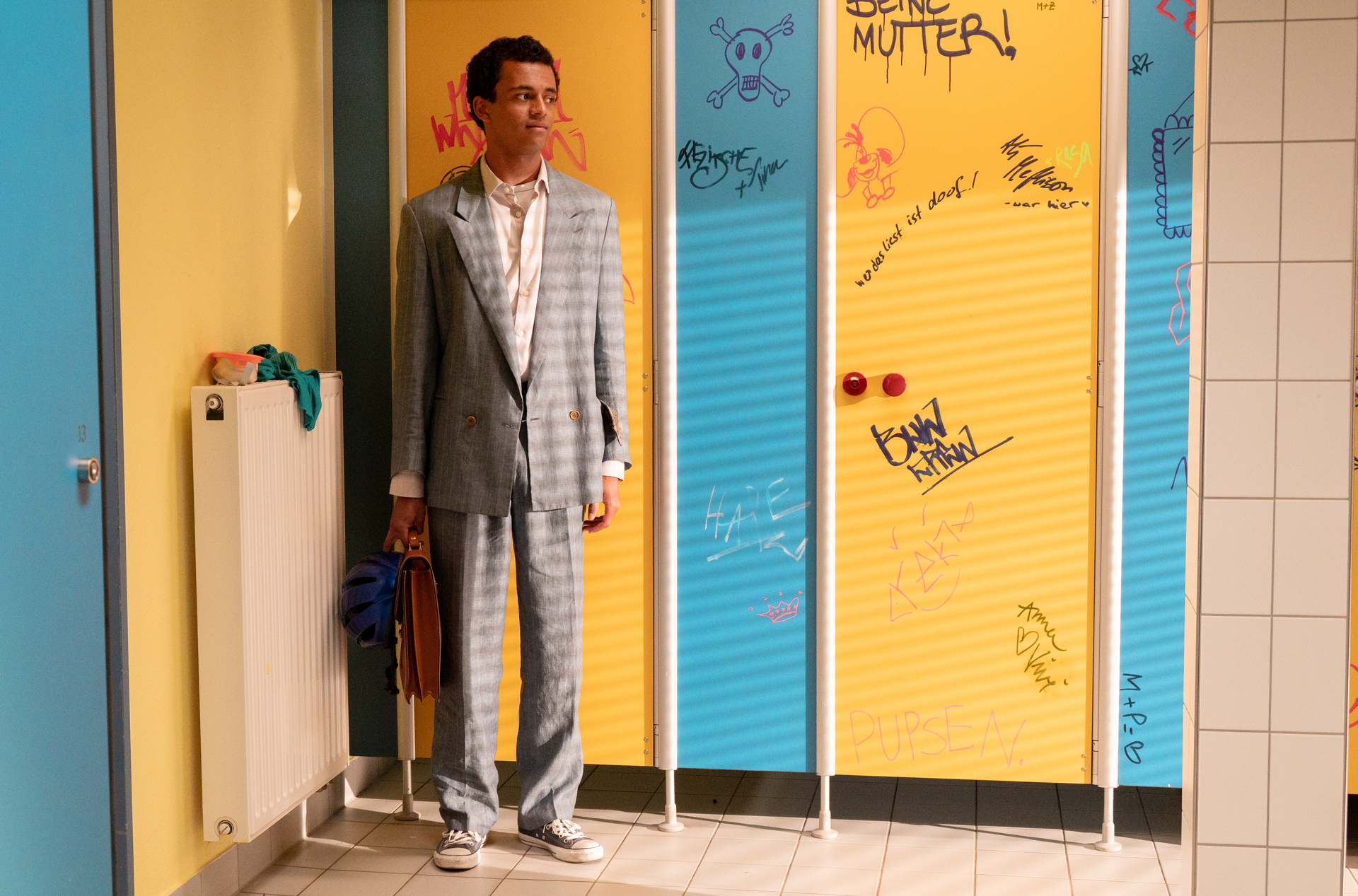 Sehr originell ist das dann alles nicht, man versuchte bei den grundsätzlichen Fragen und Konflikten nicht, etwas Eigenes zu erstellen. Aber es funktioniert. Dass der Jugendliche lernen muss, sich von seinem Vater zu emanzipieren und einen Weg zu finden, der wirklich seiner ist, ist so universell, dass sich die meisten Zuschauer und Zuschauerinnen darin wiederfinden werden. Schließlich ist der Abschluss der Schule eine ganz besondere Phase im Leben, bei der es darum geht, welche Richtung man einschlagen möchte. Für immer Freibad kombiniert diese zeitlosen Themen mit einem Zeitporträt, wenn wir ins Jahr 1999 zurückreisen. Für die Geschichte selbst hätte es das nicht gebraucht, es sorgt aber für einen gewissen Nostalgiefaktor. Nicht nur, dass hier noch die Sorge vor dem Millennium-Bug durch die Köpfe spukt. Das fast vollständige Fehlen von der heute selbstverständlichen Technologie trägt zu einer entspannten Atmosphäre bei.