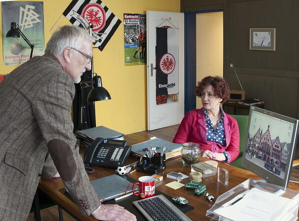 Möglichweise hing das mit der Tonalität zusammen. So wurden die Filme am Donnerstagabend ausgestrahlt, wo es im Ersten zwar jede Woche Krimis zu sehen gibt. Von Nord Nord West einmal abgesehen sind diese aber immer betont ernst. Manche gefallen sich sogar in ihrer düsteren oder gar melancholischen Stimmung. Bei Alles Verbrecher: Eiskalte Liebe setzt man hingegen auf Humor. Das betrifft zum einen die beiden Hauptfiguren. Wie man das aus vielen Buddy Movies kennt, sind diese grundverschieden. Sie ist eine ältere Frau, er ein jüngerer Mann. Sie liest gerne, er sieht dafür viele Filme. Und auch sonst muss man lange darauf warten, dass es zu Gemeinsamkeiten kommt. Dadurch entstehen von Anfang an Reibereien, da vergeht kaum eine Szene, in der sie sich nicht irgendwie kabbeln.