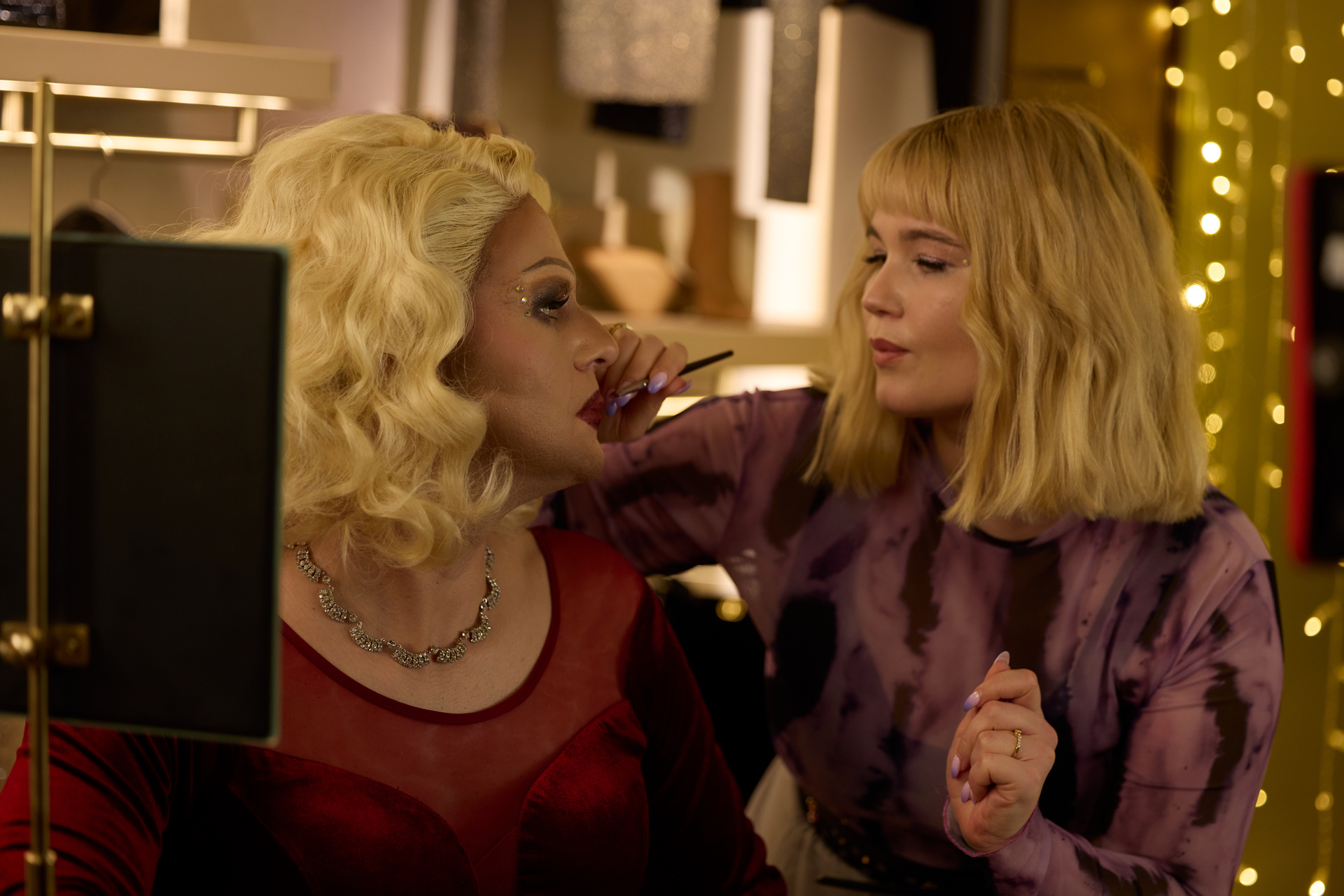 Ein Kaufhaus ist dabei natürlich um einiges gemütlicher als eine spärliche und zugige Turnhalle. Es hätte sich eigentlich auch dafür angeboten, sich mit dem Thema Kommerz auseinanderzusetzen, vor allem im Zusammenhang mit der wohnungslosen, alleinerziehenden Mutter, die so tun muss, als wäre alles in Ordnung. Das Regie- und Drehbuchduo Katharina Schöde und Felix Fuchssteiner hat aber kein Interesse daran. An späterer Stelle wird zwar anderweitig nachdenklich, wenn es um die strauchelnde Influencerin geht und den Social-Media-Wahn nach einem idealisierten Glamour-Leben. Mehr als Binsenweisheiten hat Weihnachten im Olymp da aber nicht zu liefern. Gleiches gilt für den Buchhalter, der immer davon träumte, vornehme Abendkleider zu tragen. Warum er das tut, ob es mehr Verkleidung oder inneres Ich ist – der Film schweigt sich dazu aus.