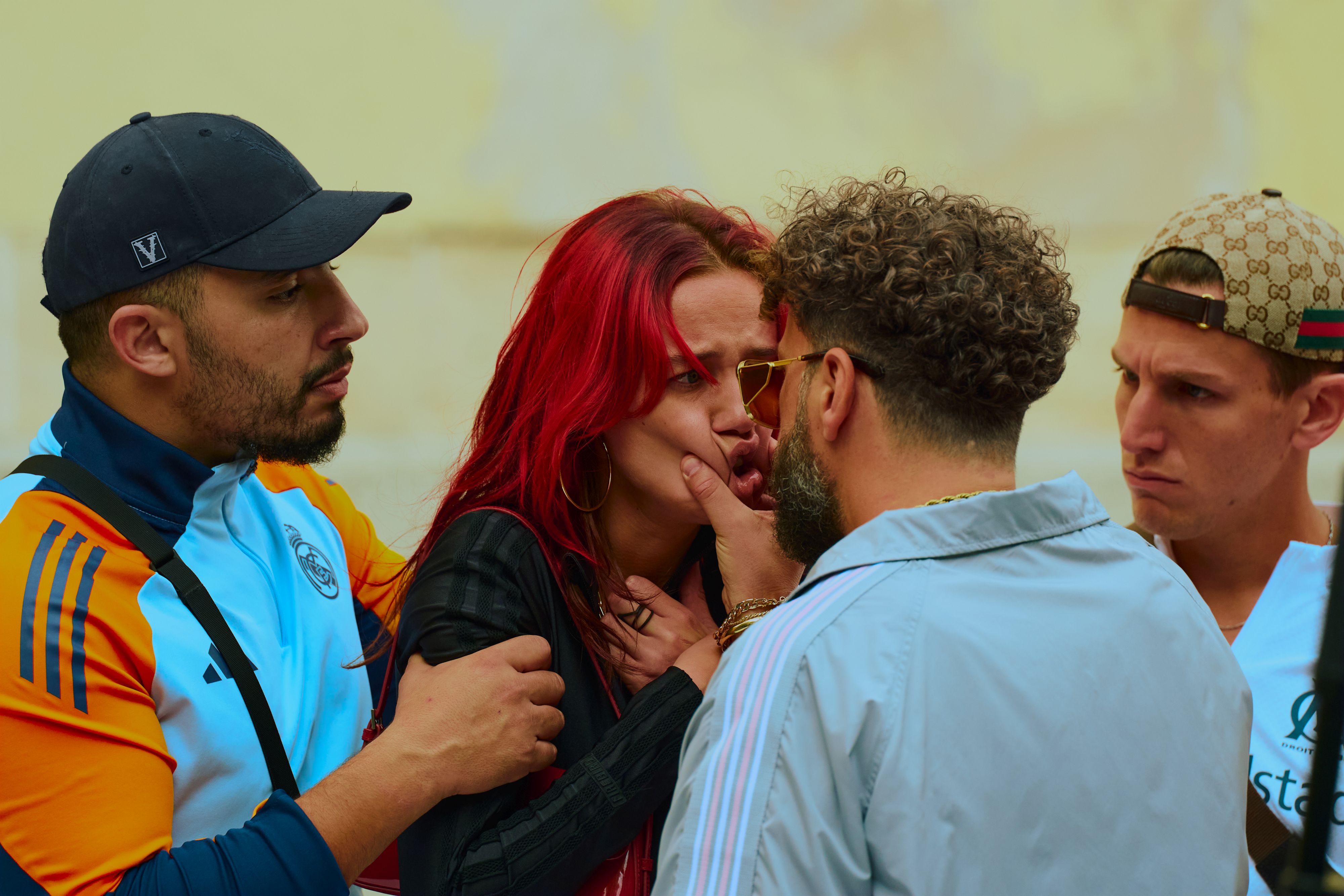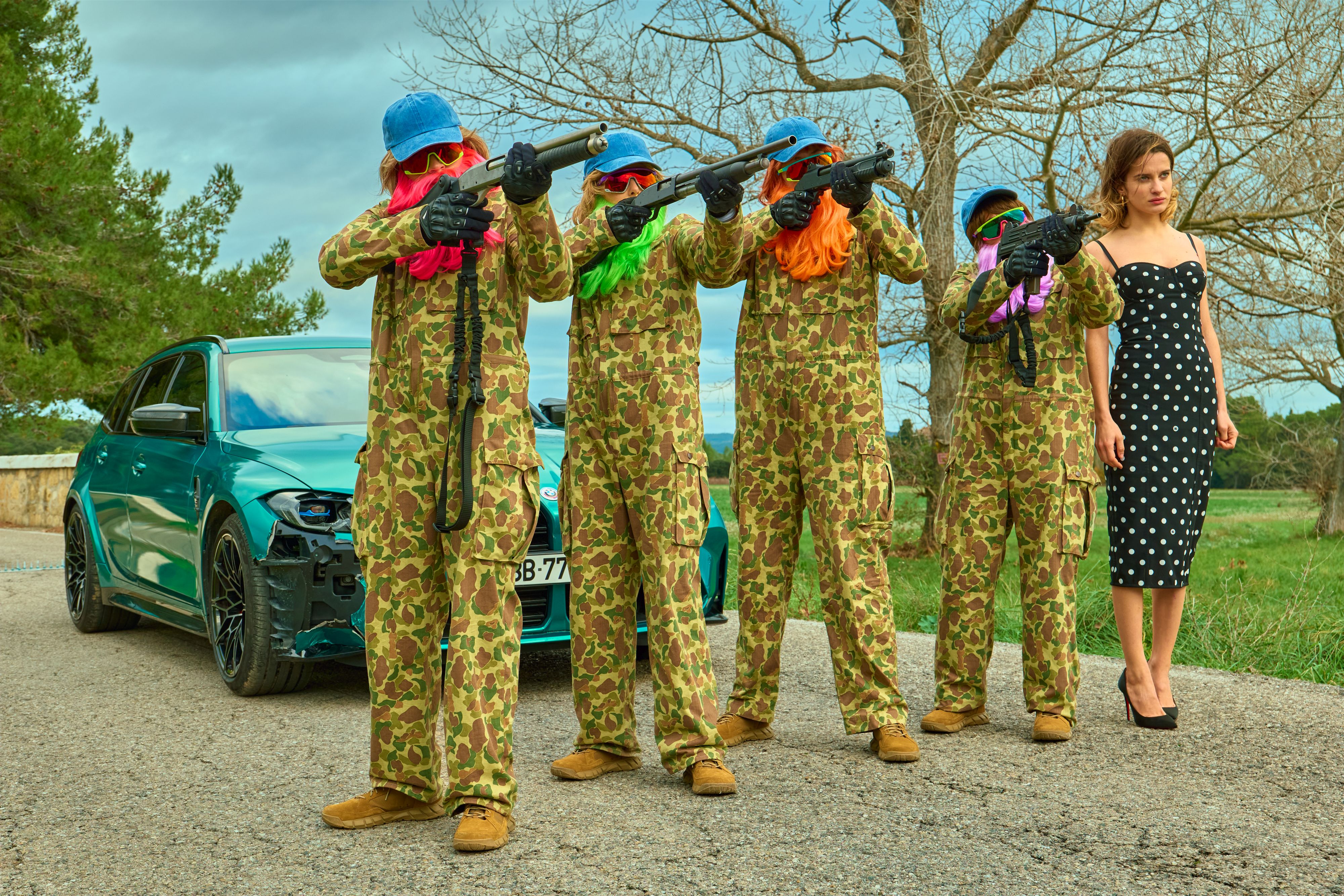 Tatsächlich verkauft Netflix die Serie als Komödie. Das ist sicher nicht ganz falsch, wenn die Protagonistinnen immer mal wieder in kuriose Situationen geraten und das Chaos dabei immer größer wird. Die Löwinnen arbeitet zudem mit Elementen, die ganz bewusst darauf ausgelegt sind, dass das Publikum etwas zu lachen bekommt. Da sind beispielsweise die knallbunten Bärte, welche sich die fünf zur Tarnung angelegt haben, was zusammen mit den Militäranzügen herrlich bescheuert aussieht. Auch Einfälle wie das Bällebad sind gelungen. Hinzu kommt die Dynamik zwischen den Figuren, ob es innerhalb der Gang ist oder mit den anderen. Beispielsweise spielt später noch ein von Jonathan Cohen gespielter Bankdirektor eine größere Rolle, der irgendwo zwischen Opfer und Love Interest angelegt ist. Dann und wann kommt noch Overacting hinzu.