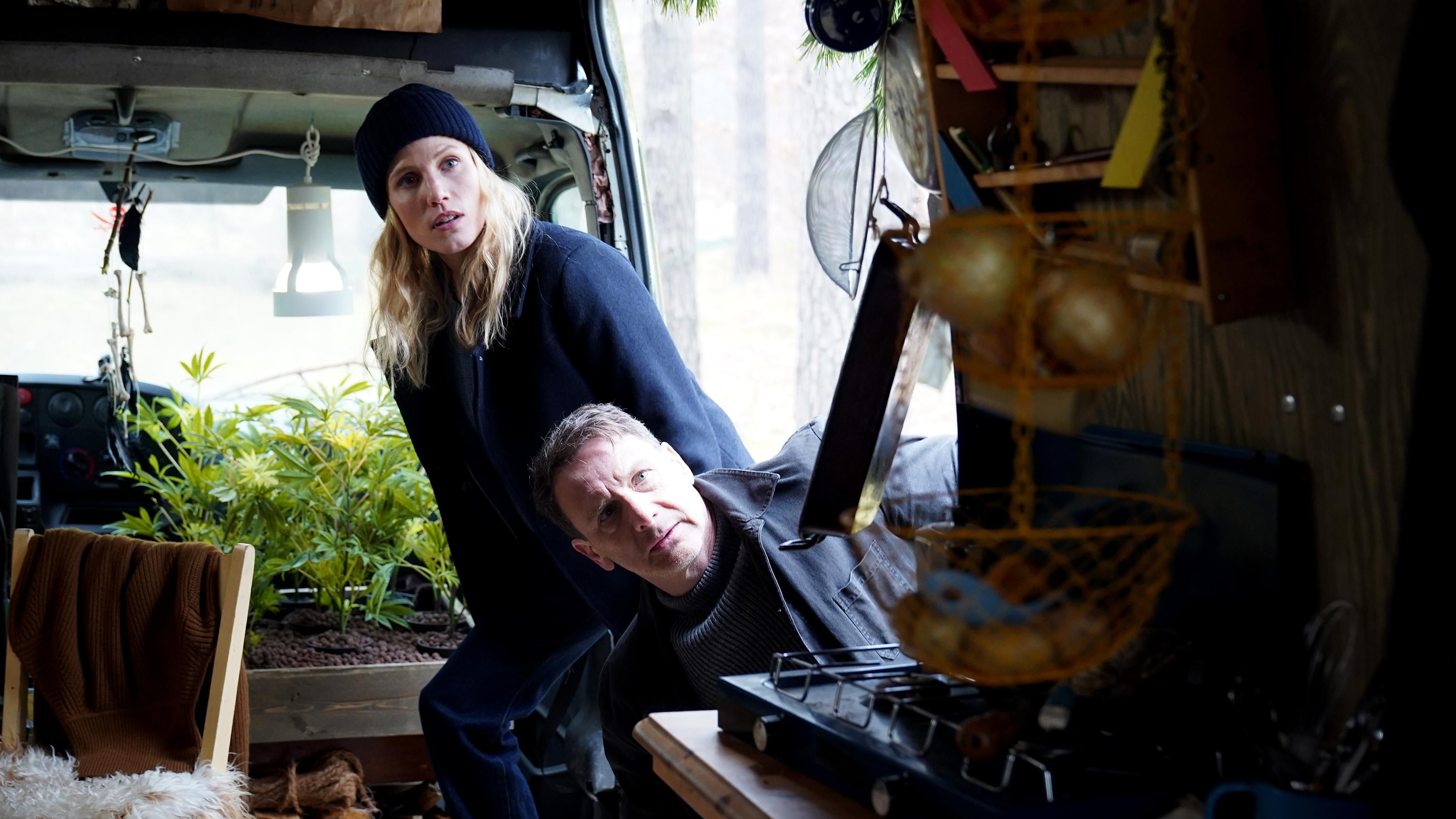 Dabei handelt es sich wieder um den gewohnten Whodunit-Krimi. Wo es vergangene Woche recht früh klar war, worum es ging, soll hier bis zum Ende gerätselt werden, wer das Verbrechen begangen hat. Dafür kommen natürlich mehrere Leute in Frage, das Publikum soll schon ein bisschen was zur Auswahl haben, damit man auch genügend grübeln kann. Dünentod – Ein Nordsee-Krimi: Blutiges Moor lockt dabei zunächst mit dem im Wald lebenden Außenseiter, der so seltsam ist, dass er allein dafür schon ein Mörder sein kann. Zwar weiß das erfahrene Publikum, dass dies nicht die Lösung sein kann, da die erste Hypothese praktisch nie stimmt. Dennoch gehört die Passage um den traumatisierten Mann, der zurückgezogen lebt, zu den Stärken des Films, da die Figur doch eine tragische ist, die einem irgendwie nahegehen kann.